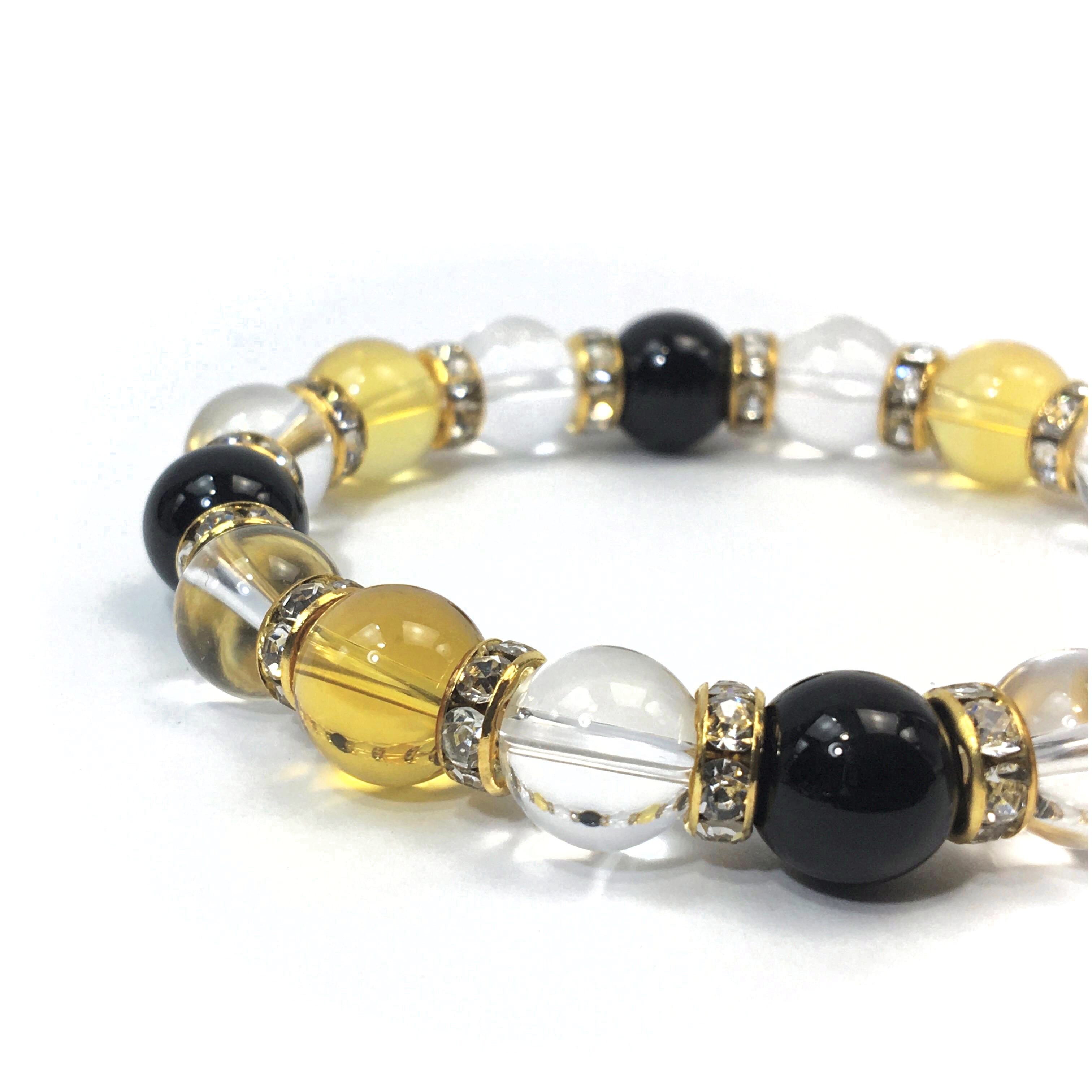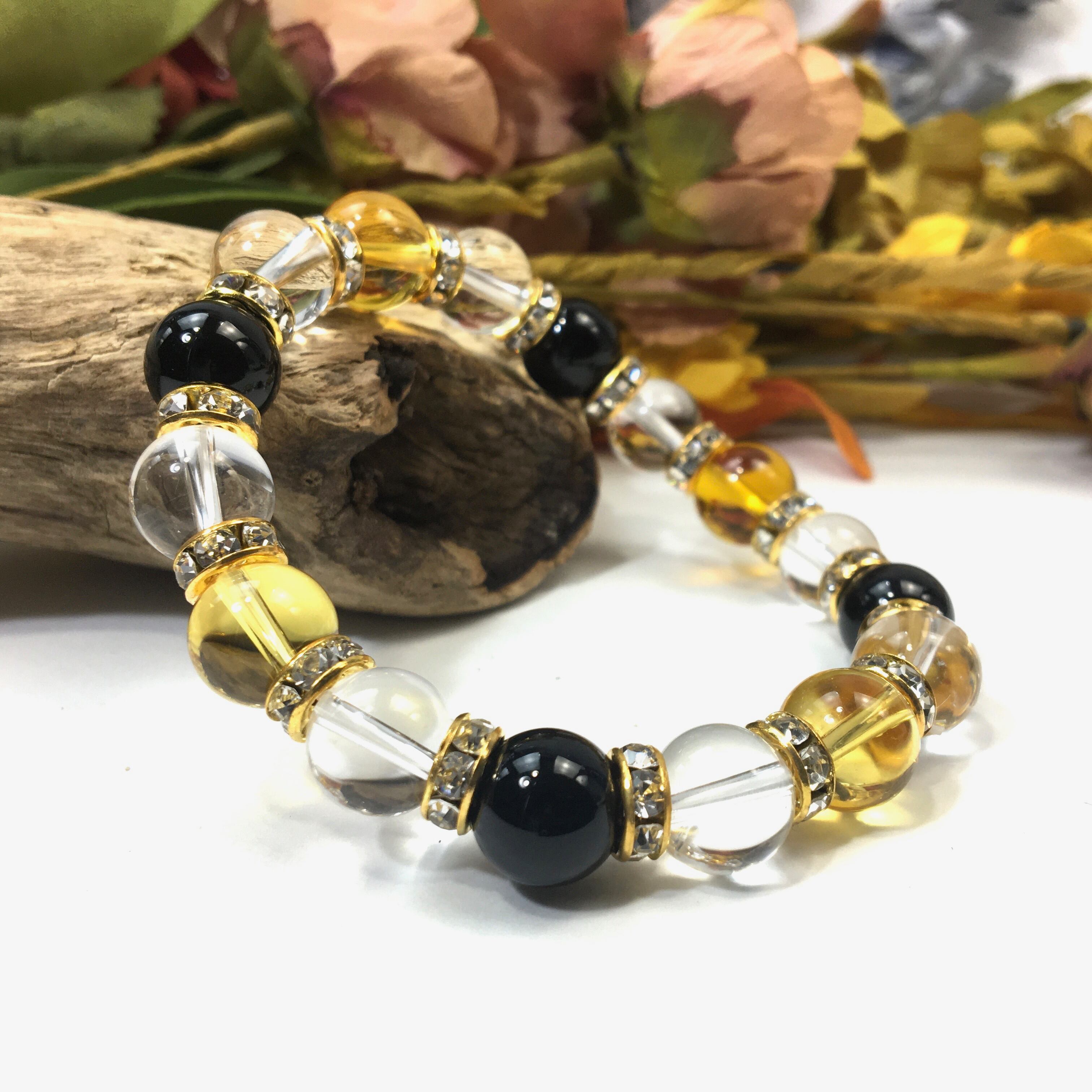シトリン×水晶×オニキス パワーストーン ブレスレット10mm(ゴールド)メンズ・レディース 男性・女性 数珠ブレス 開運 ☆