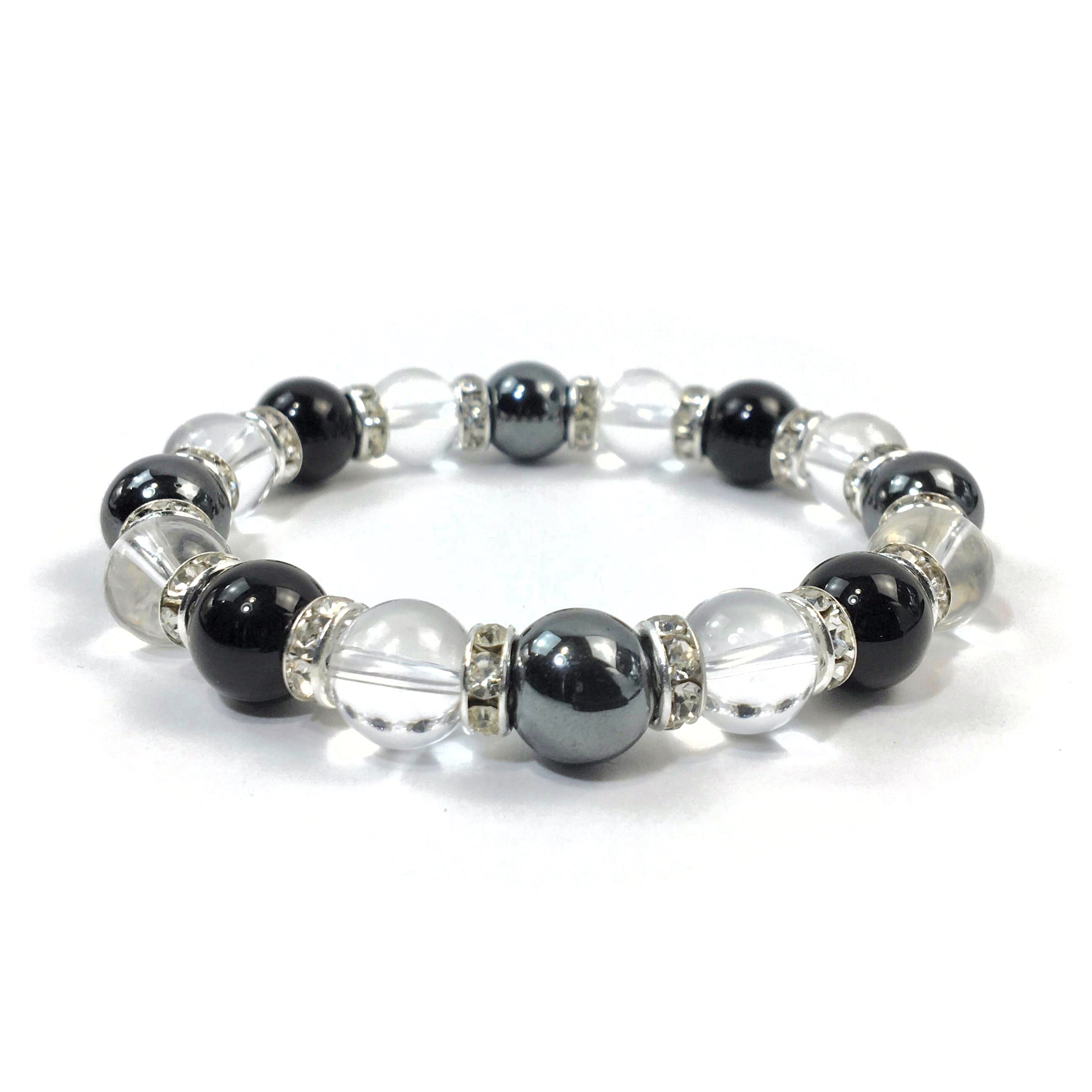 ヘマタイト×水晶×オニキス パワーストーン ブレスレット10mm(シルバー)メンズ・レディース 男性・女性 数珠ブレス 開運 ☆