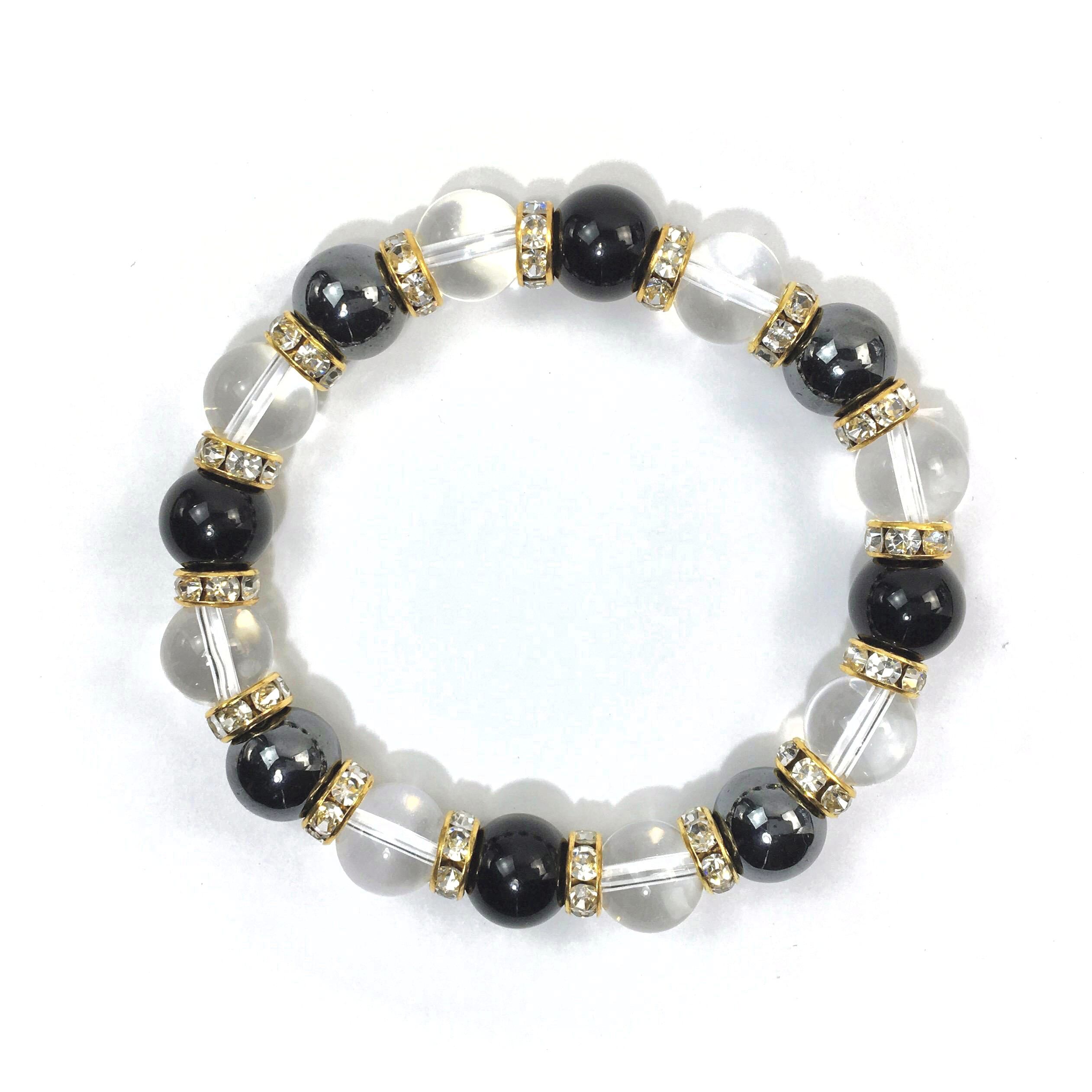 ヘマタイト×水晶×オニキス パワーストーン ブレスレット10mm(ゴールド)メンズ・レディース 男性・女性 数珠ブレス 開運 ☆