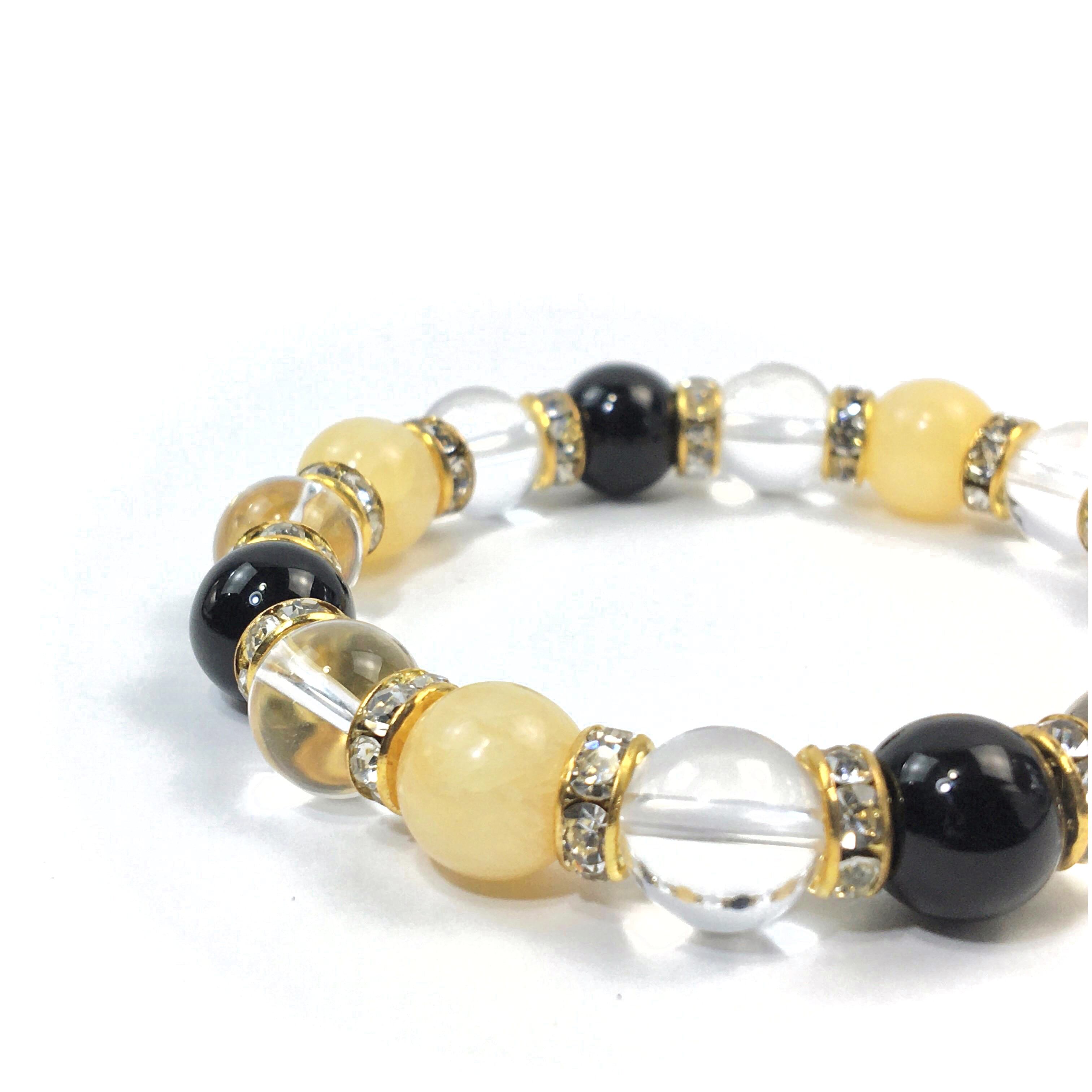 アラゴナイト×水晶×オニキス パワーストーン ブレスレット10mm(ゴールド)メンズ・レディース 男性・女性 数珠ブレス 開運 ☆
