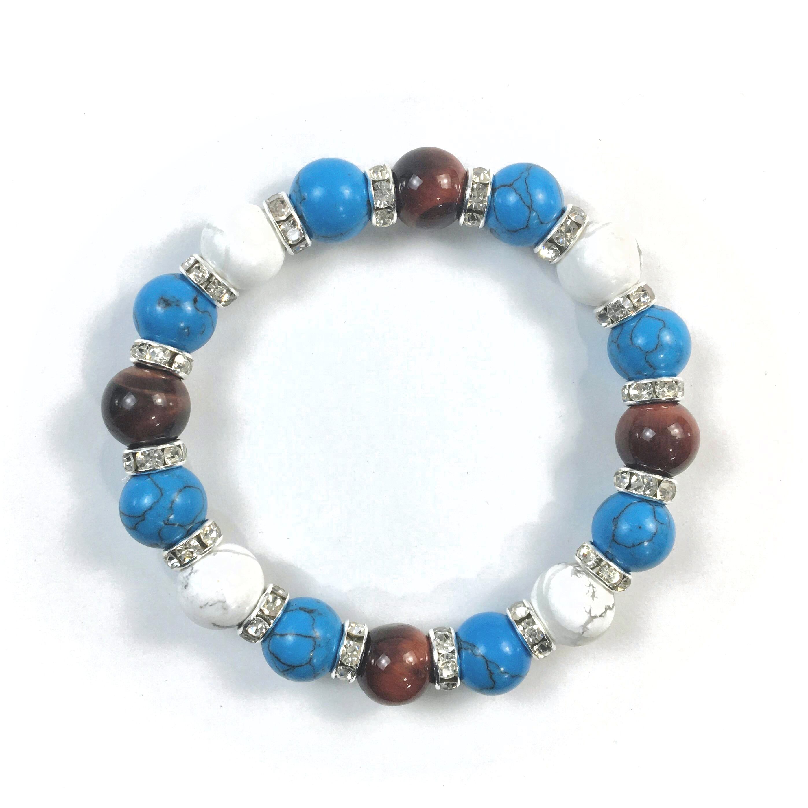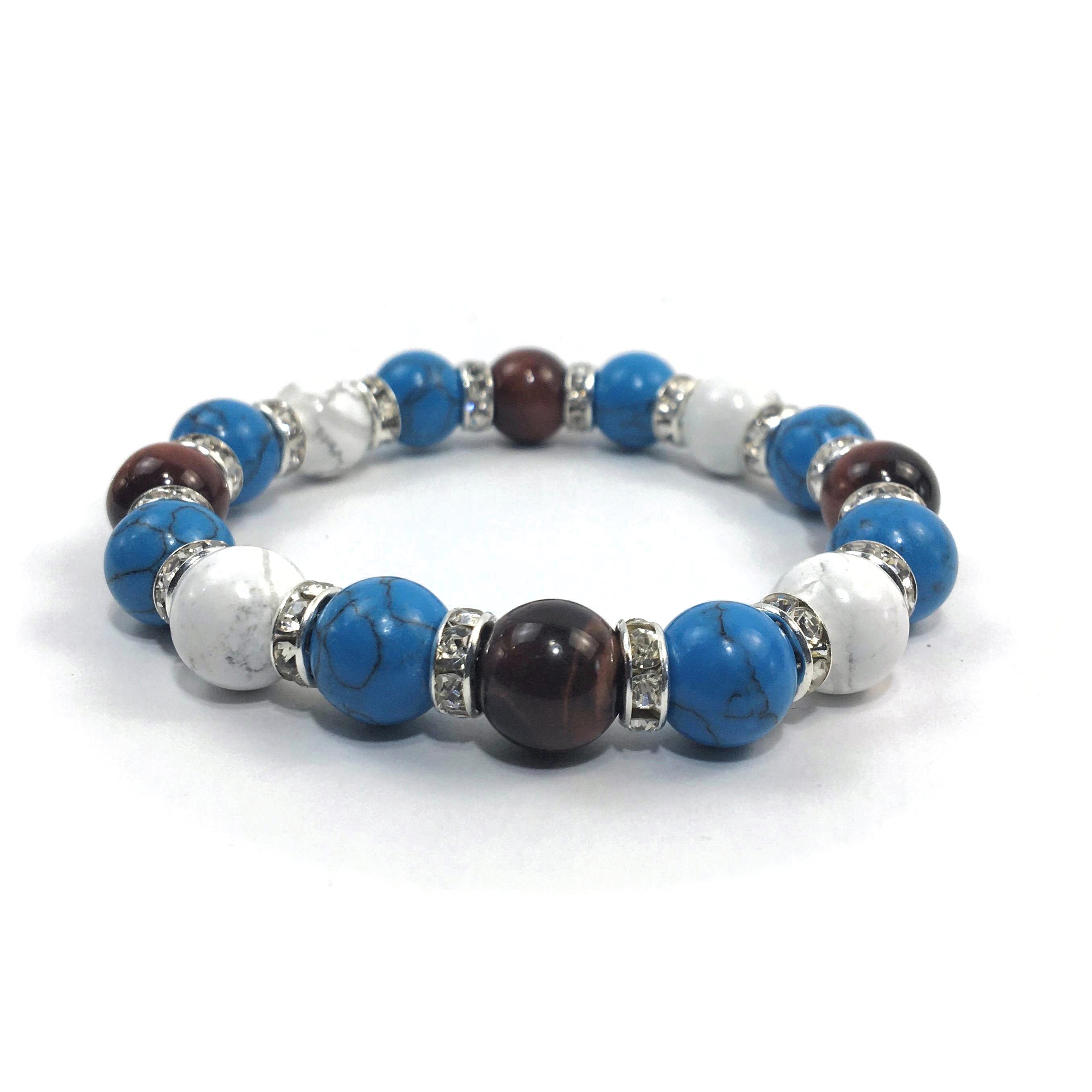 レッドタイガーアイ×ハウライト×ターコイズ パワーストーンブレス 10mm(シルバー)メンズ・レディース 男性・女性 数珠ブレス 開運 ☆
