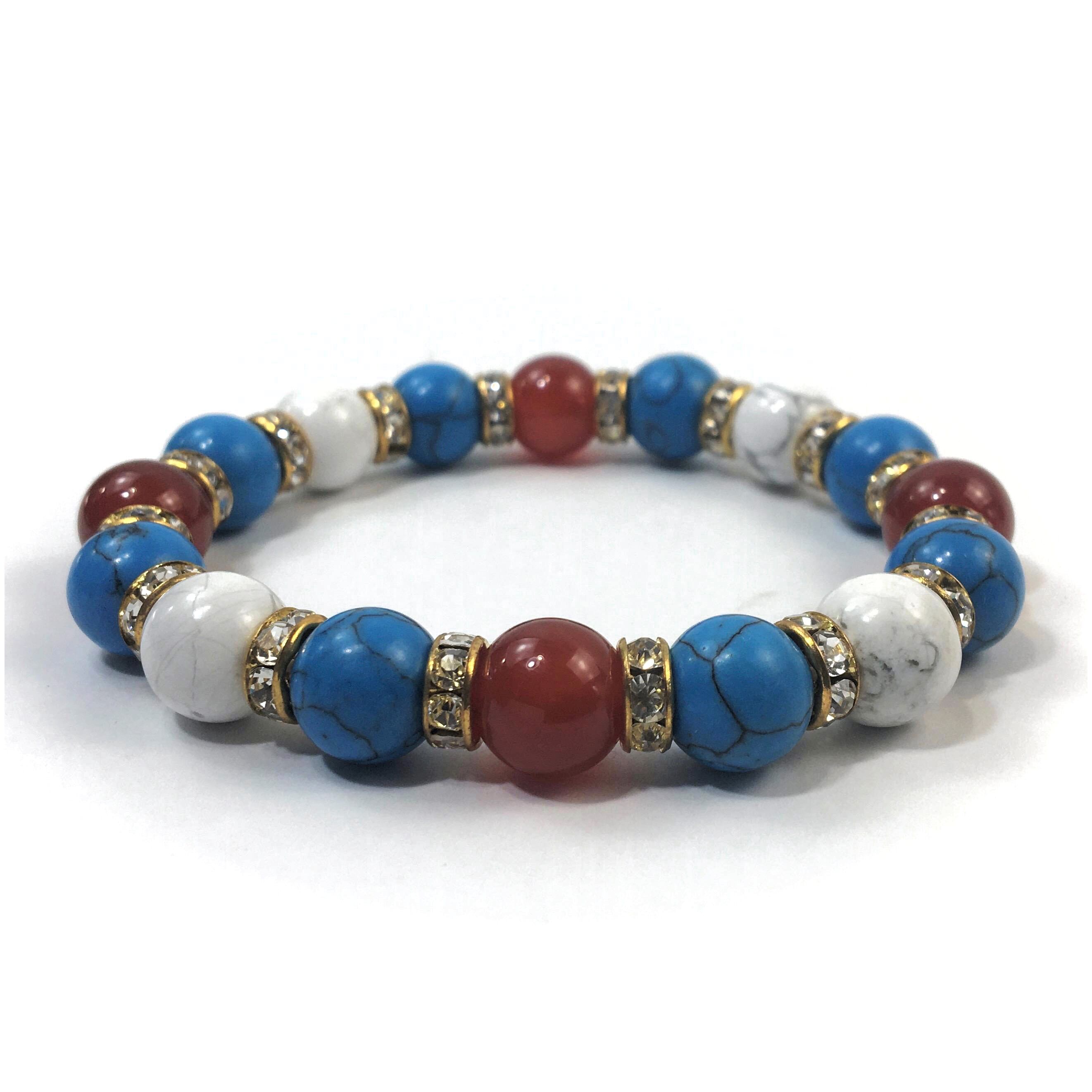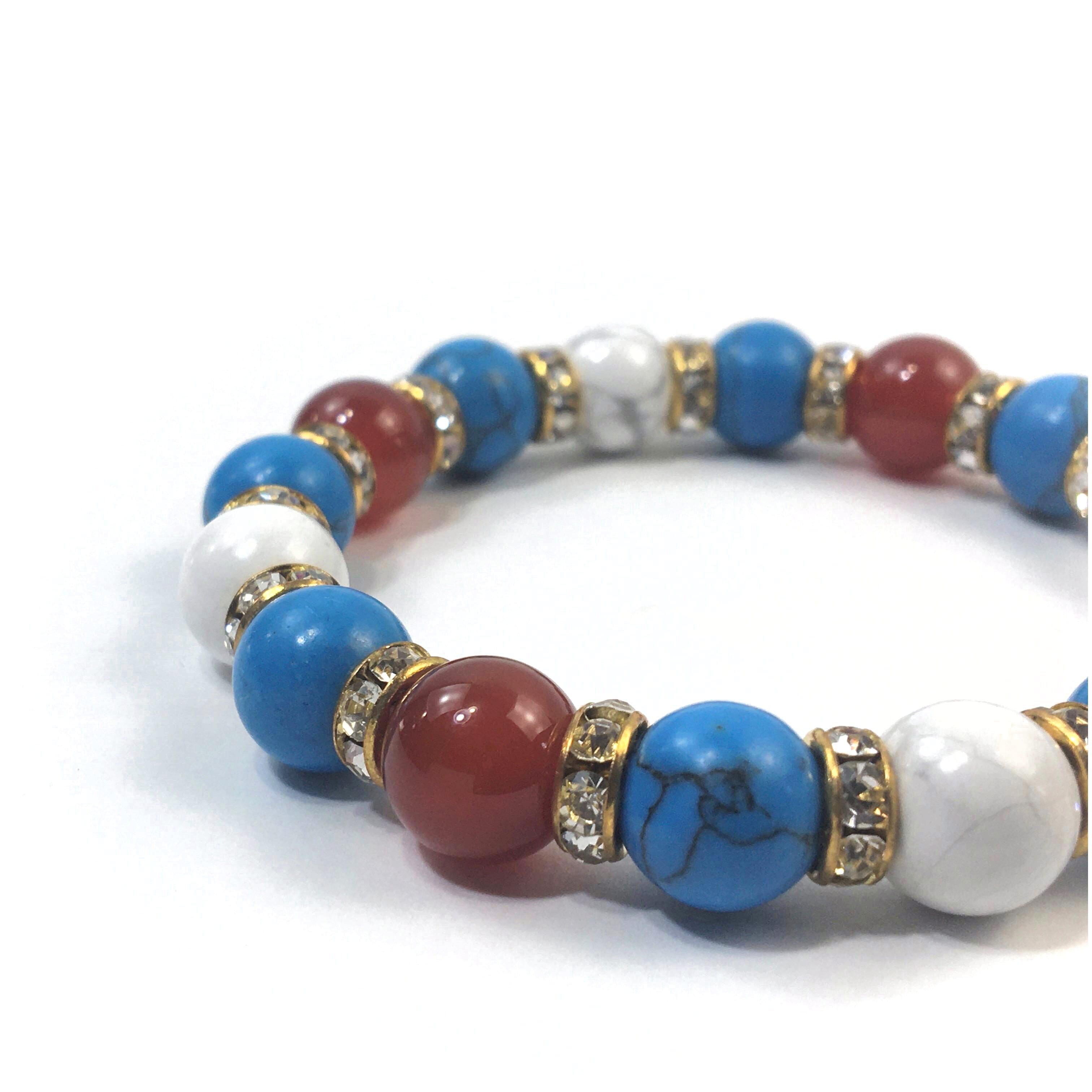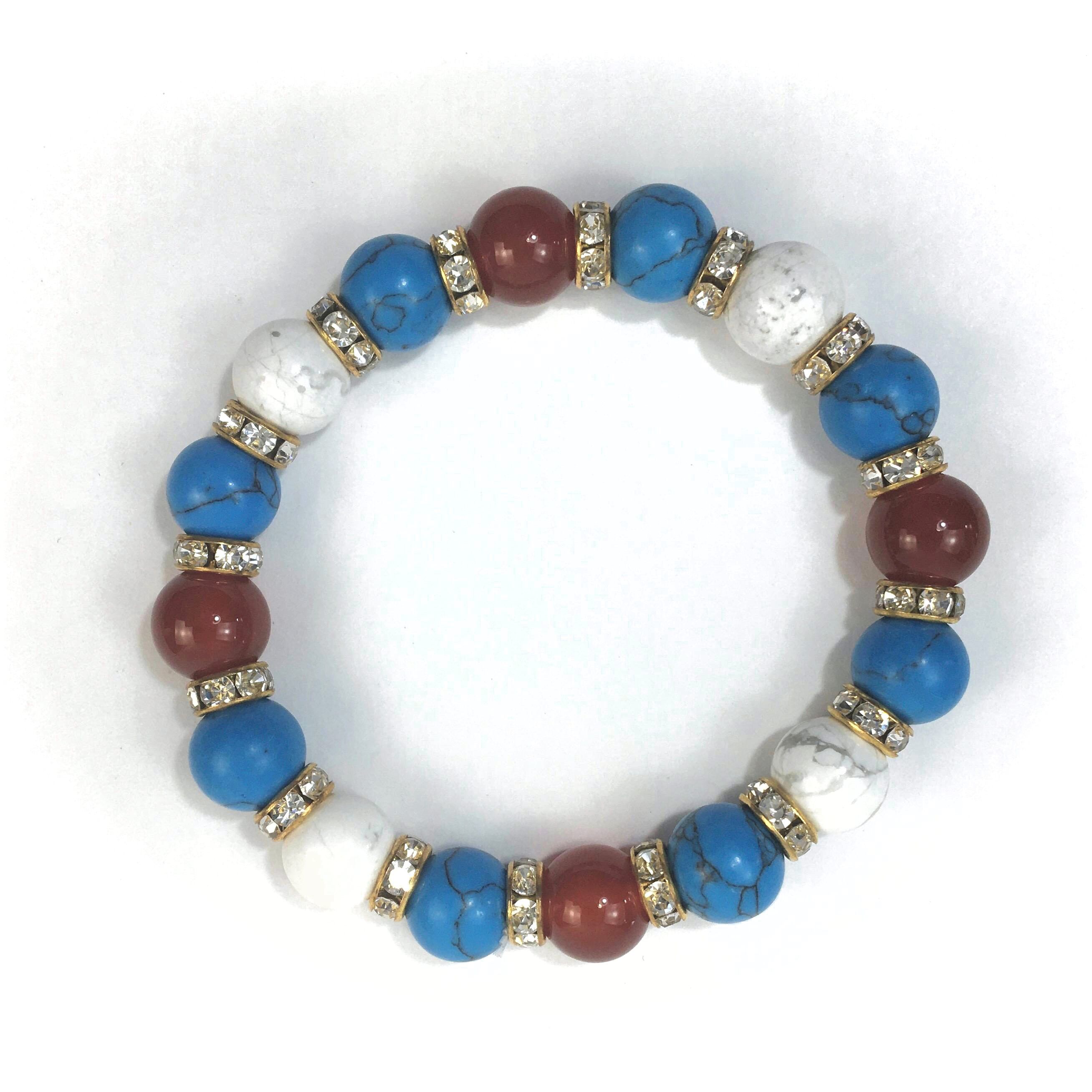 赤瑪瑙×ハウライト×ターコイズ パワーストーンブレス 10mm(ゴールド)メンズ・レディース 男性・女性 数珠ブレス 開運 ☆