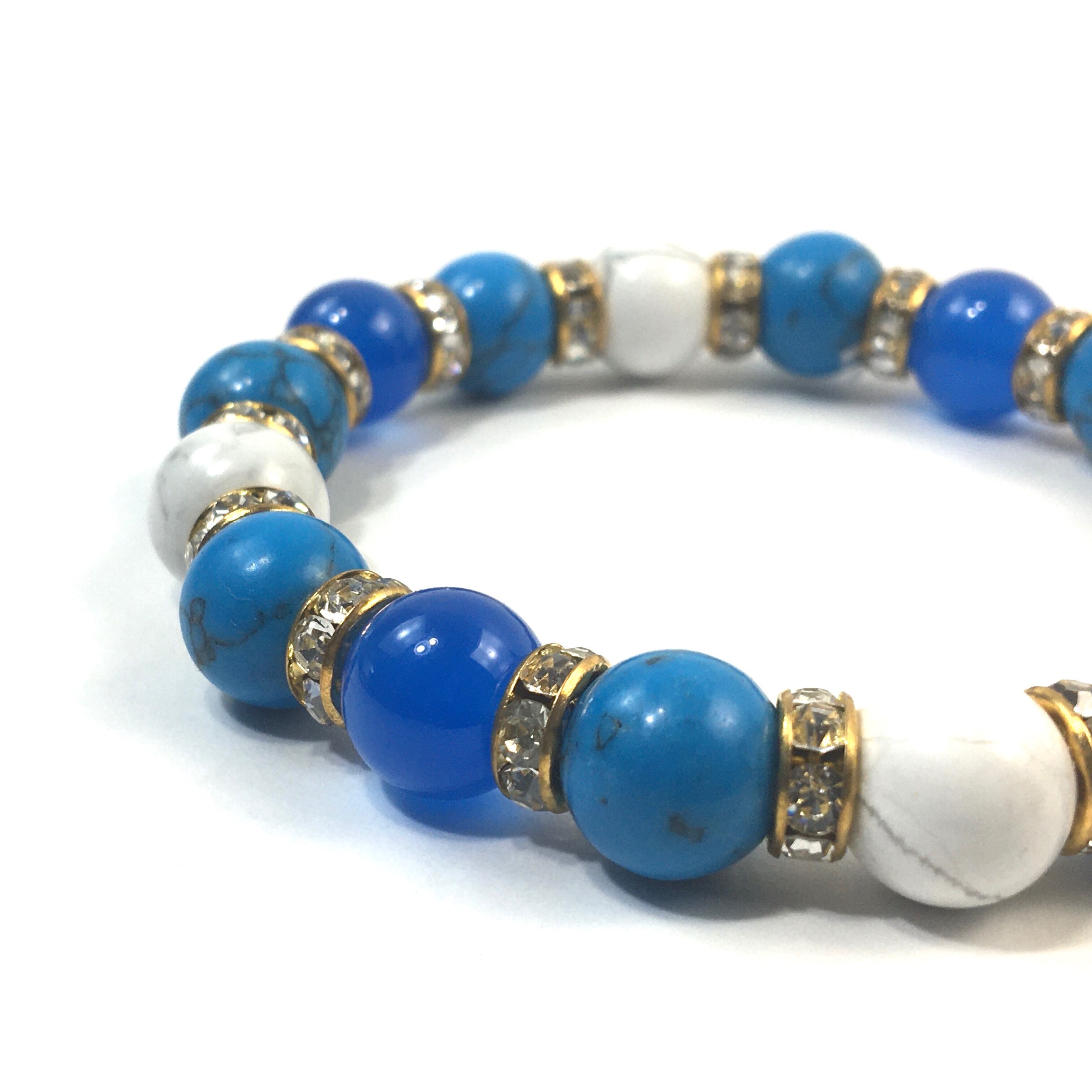 ブルーメノウ×ハウライト×ターコイズ パワーストーンブレス 10mm(ゴールド)メンズ・レディース 男性・女性 数珠ブレス 開運 ☆