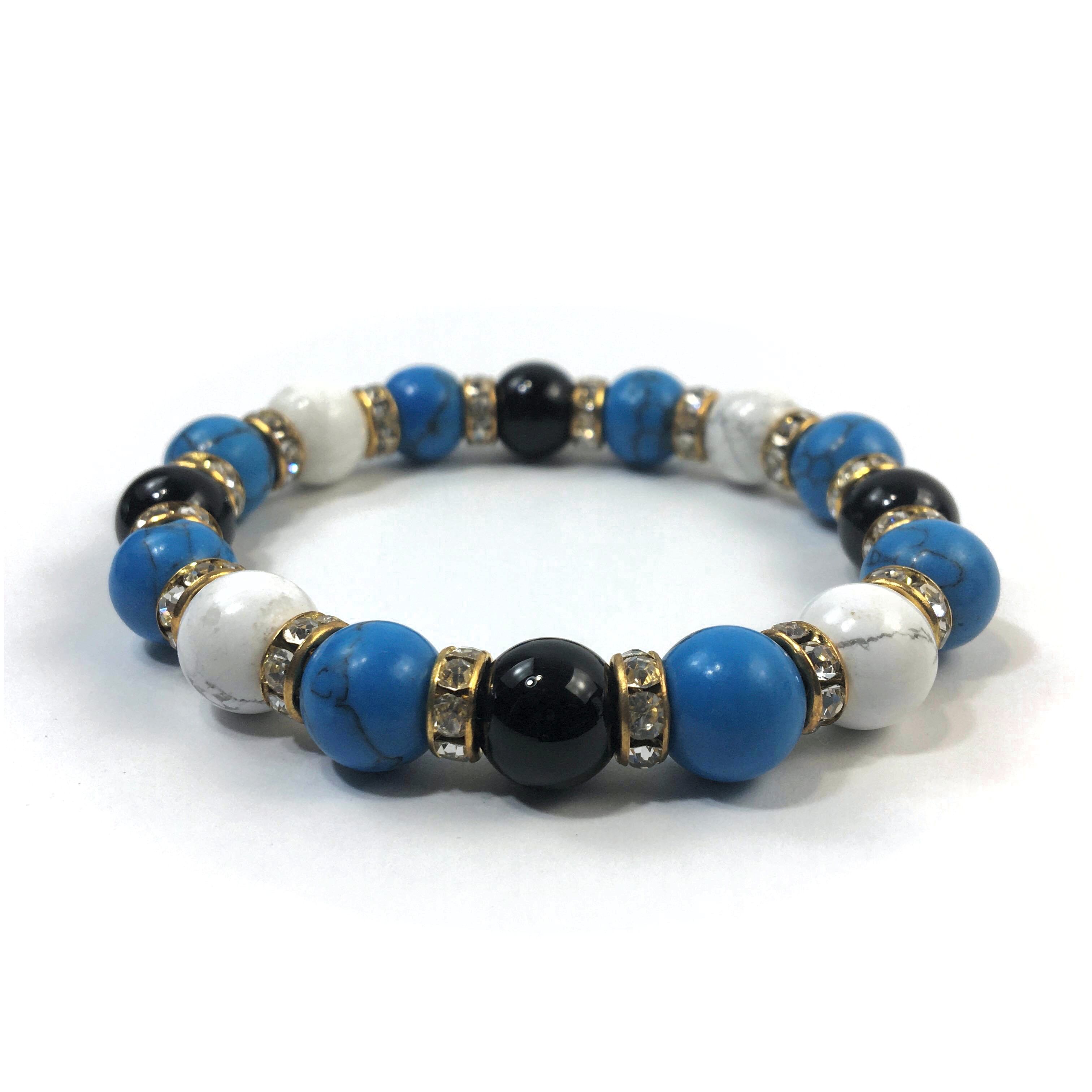 オニキス×ハウライト×ターコイズ パワーストーンブレス 10mm(ゴールド)メンズ・レディース 男性・女性 数珠ブレス 開運 ☆