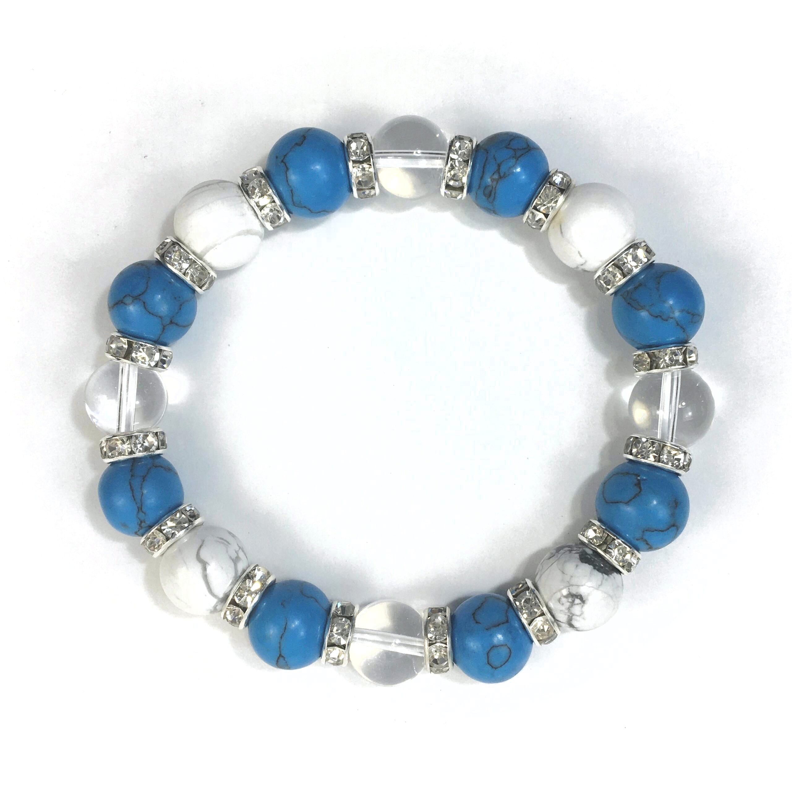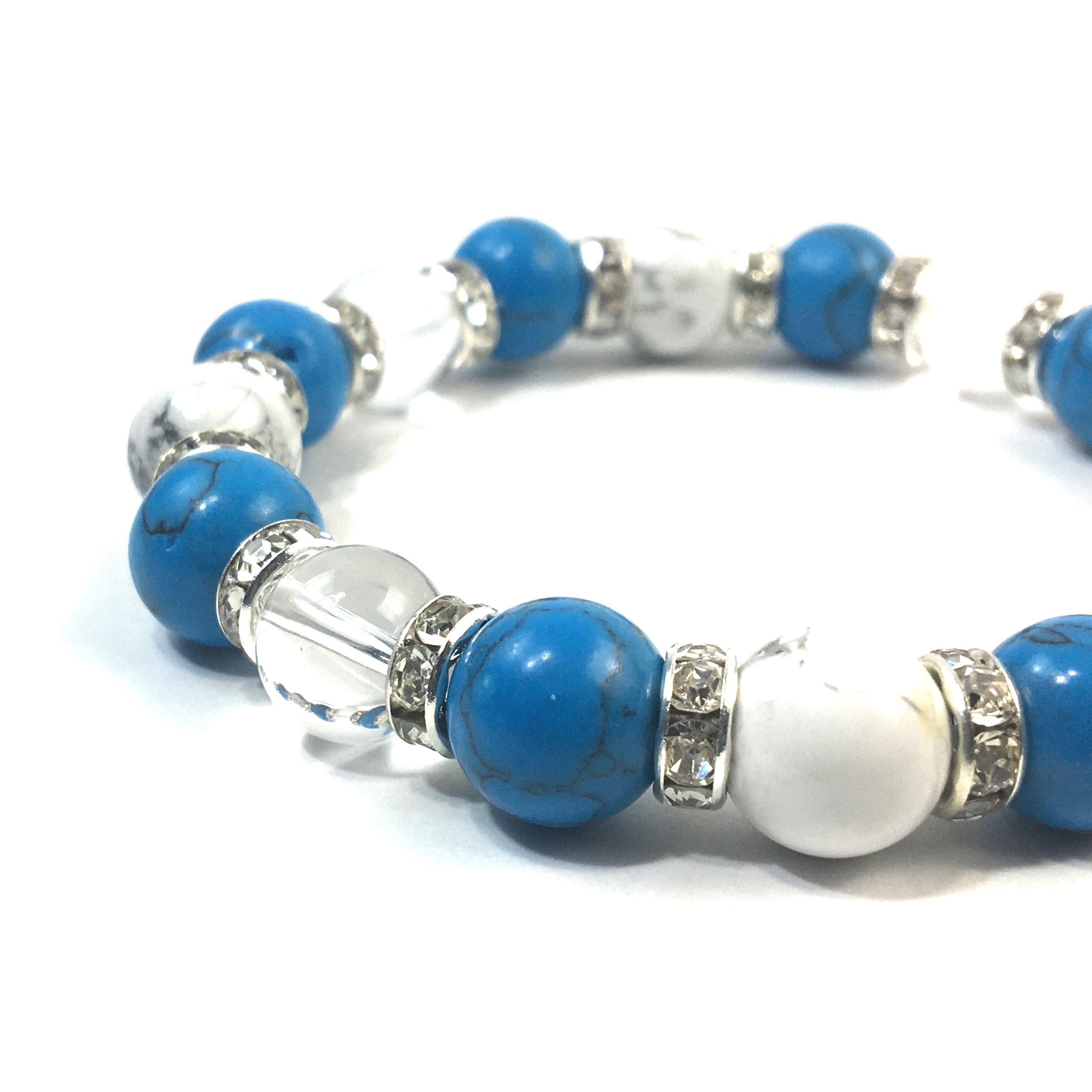 水晶×ハウライト×ターコイズ パワーストーンブレス 10mm(シルバー)メンズ・レディース 男性・女性 数珠ブレス 開運 ☆