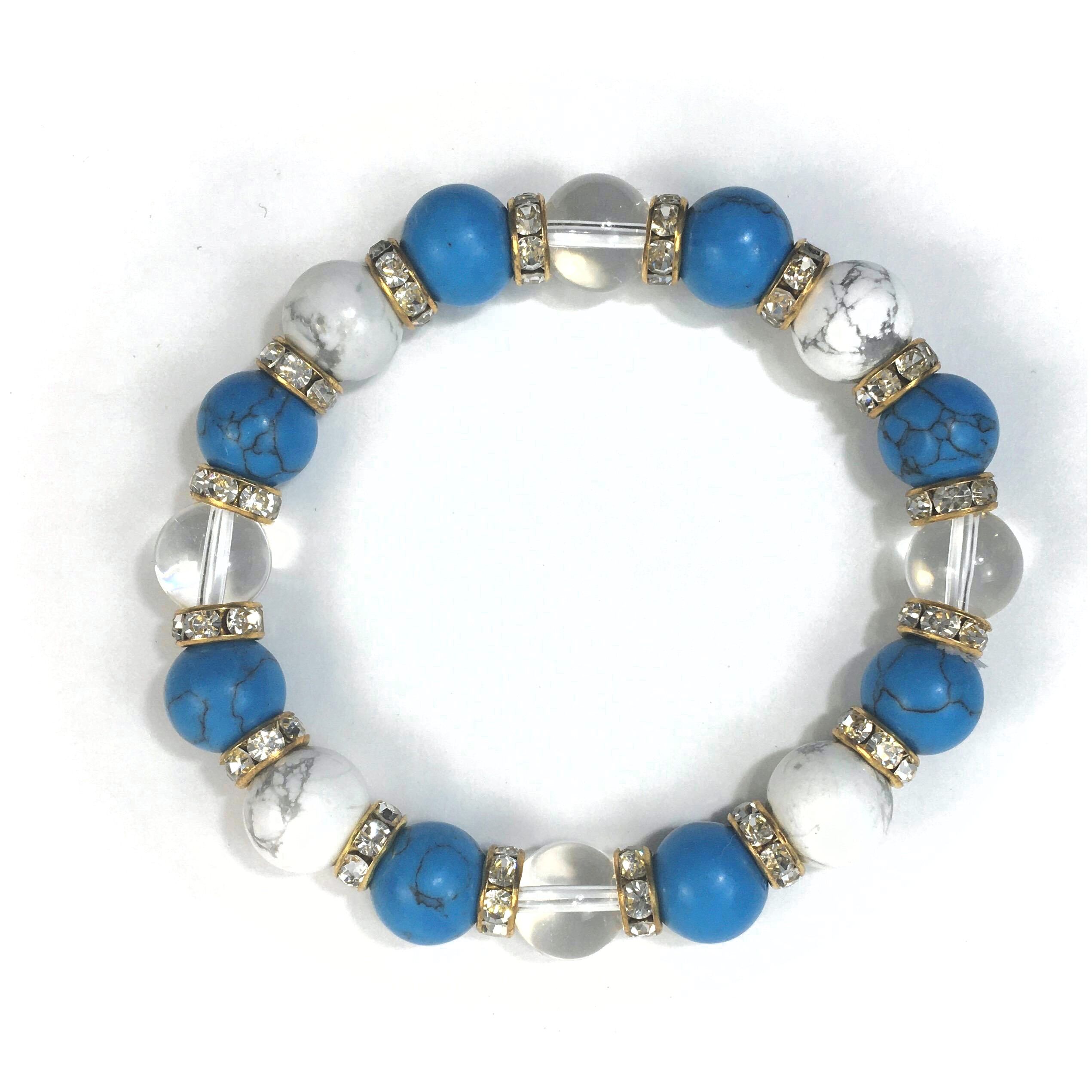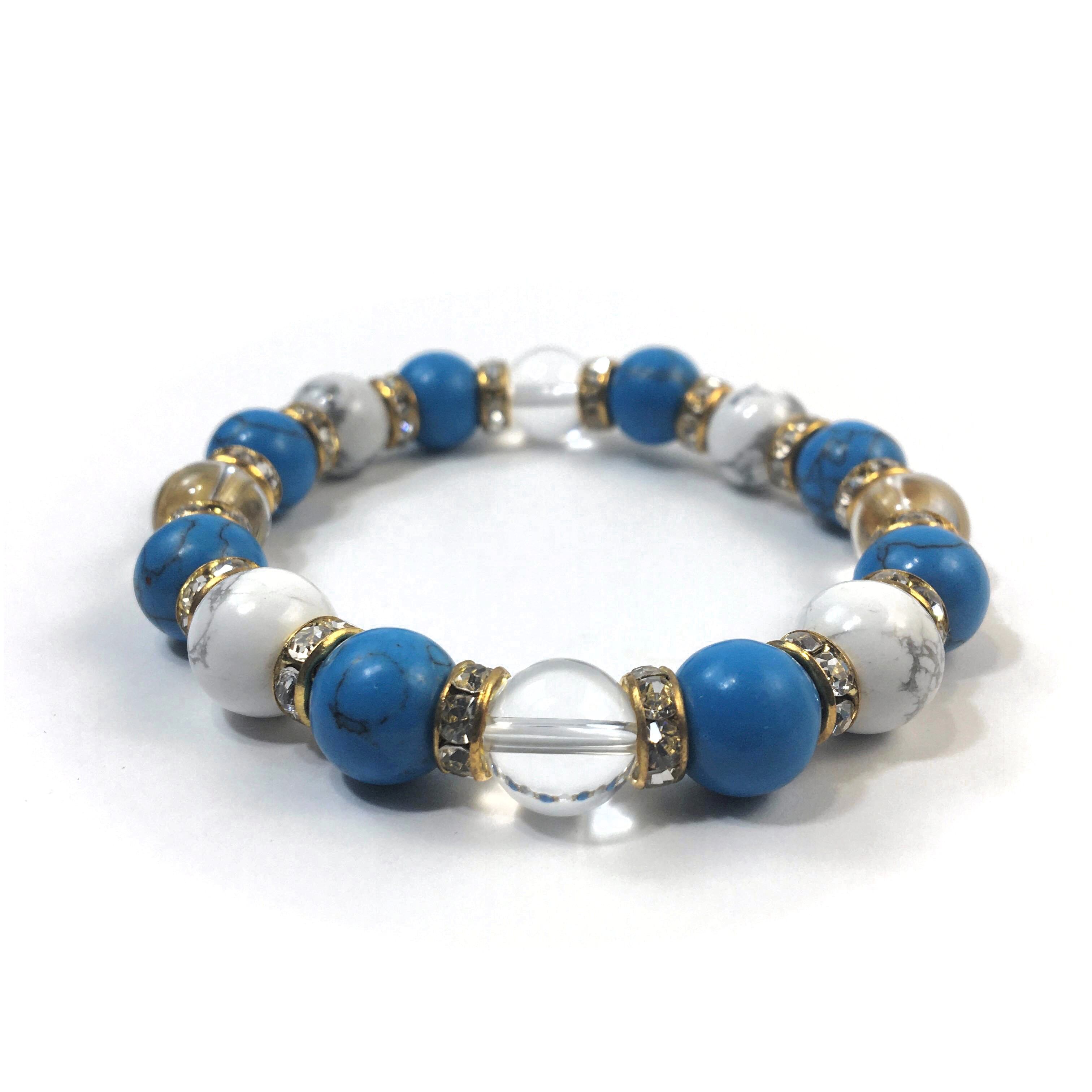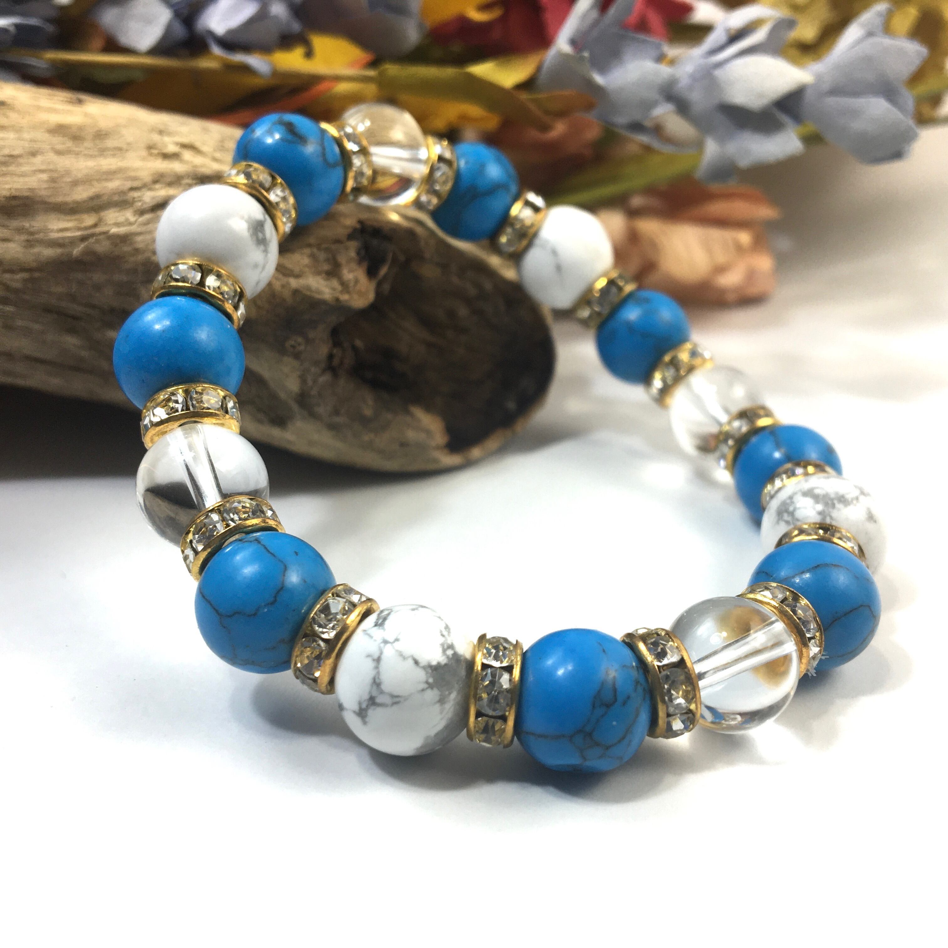 水晶×ハウライト×ターコイズ パワーストーンブレス 10mm(ゴールド)メンズ・レディース 男性・女性 数珠ブレス 開運 ☆