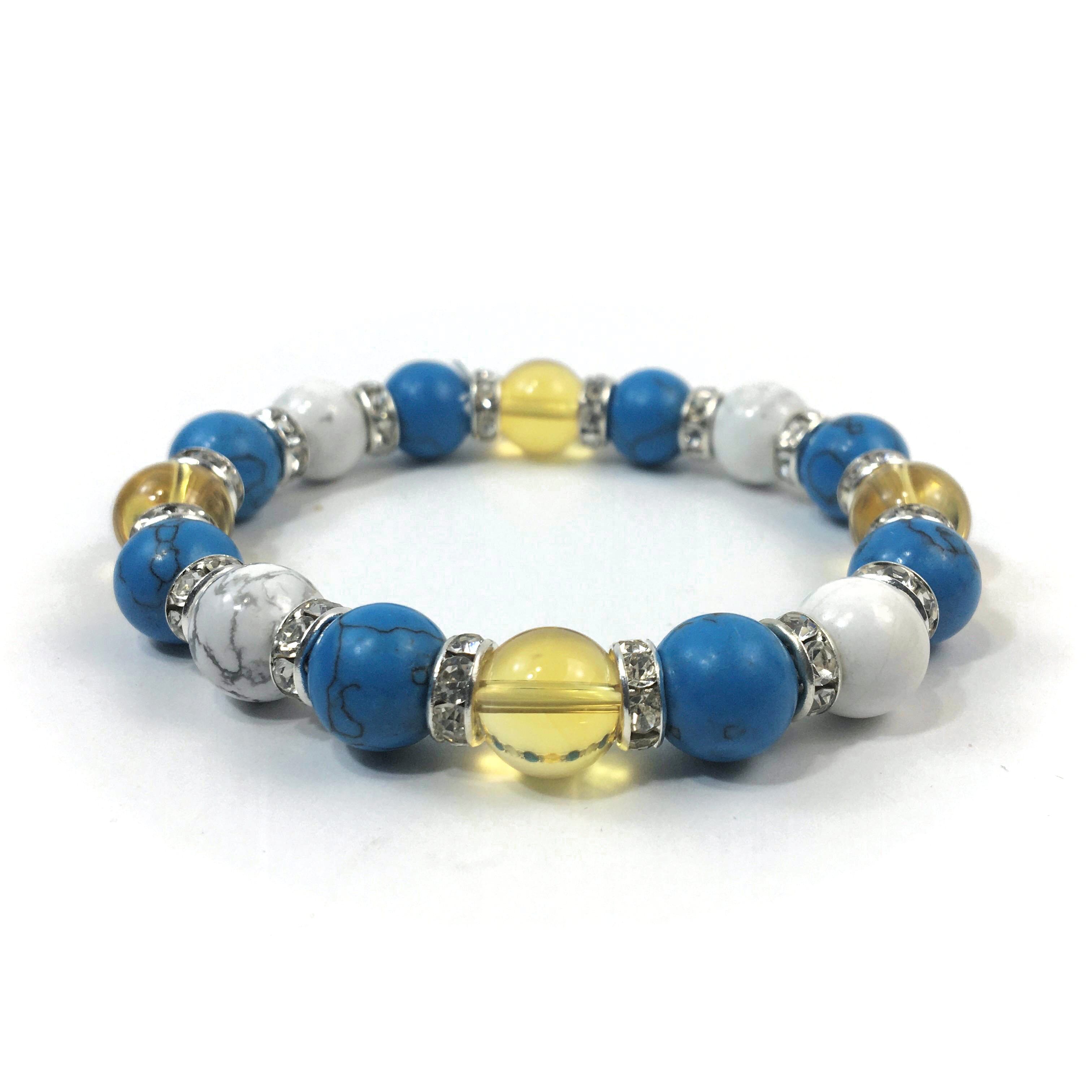 シトリン×ハウライト×ターコイズ パワーストーンブレス 10mm(シルバー)メンズ・レディース 男性・女性 数珠ブレス 開運 ☆