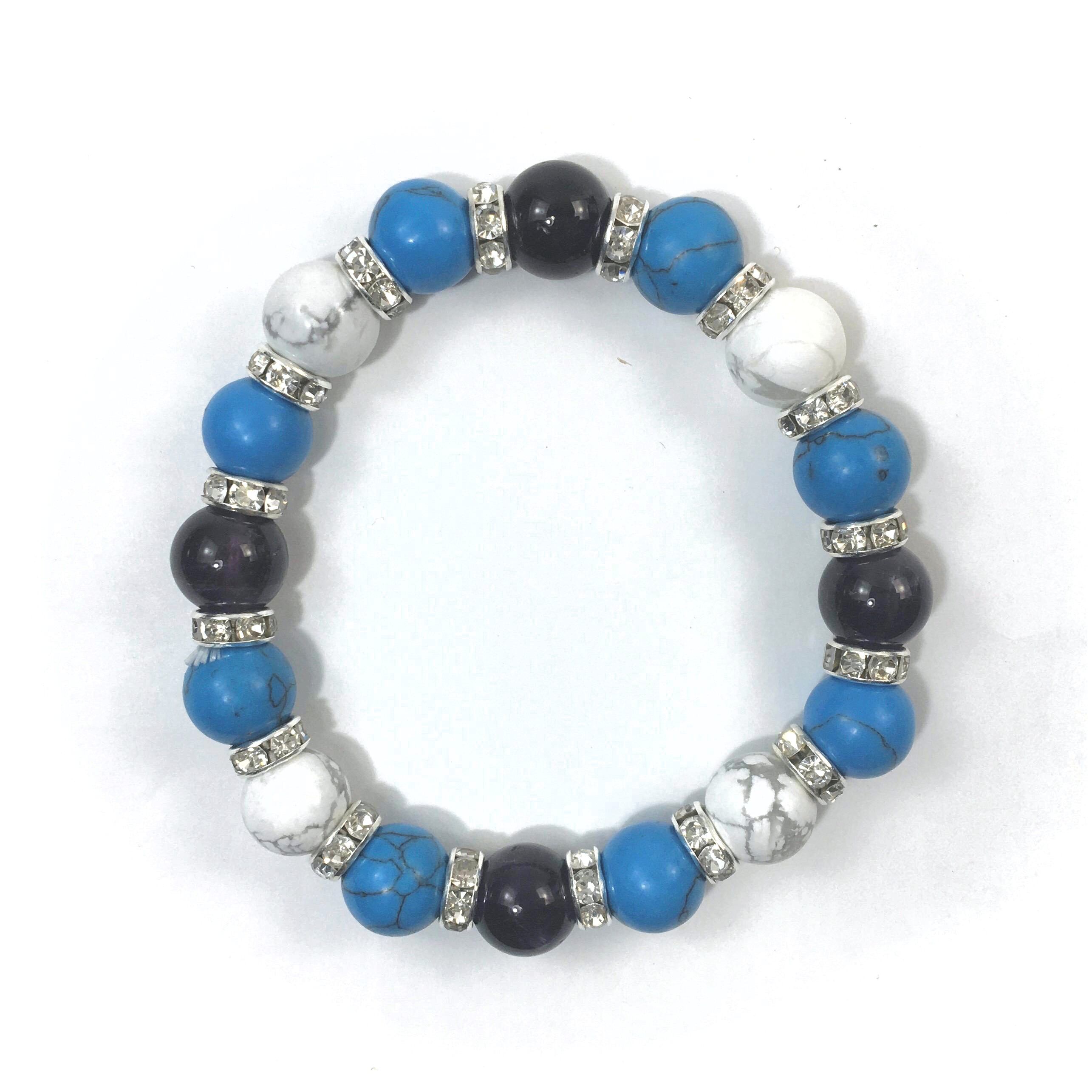 アメジスト×ハウライト×ターコイズ パワーストーンブレス 10mm(シルバー)メンズ・レディース 男性・女性 数珠ブレス 開運 ☆