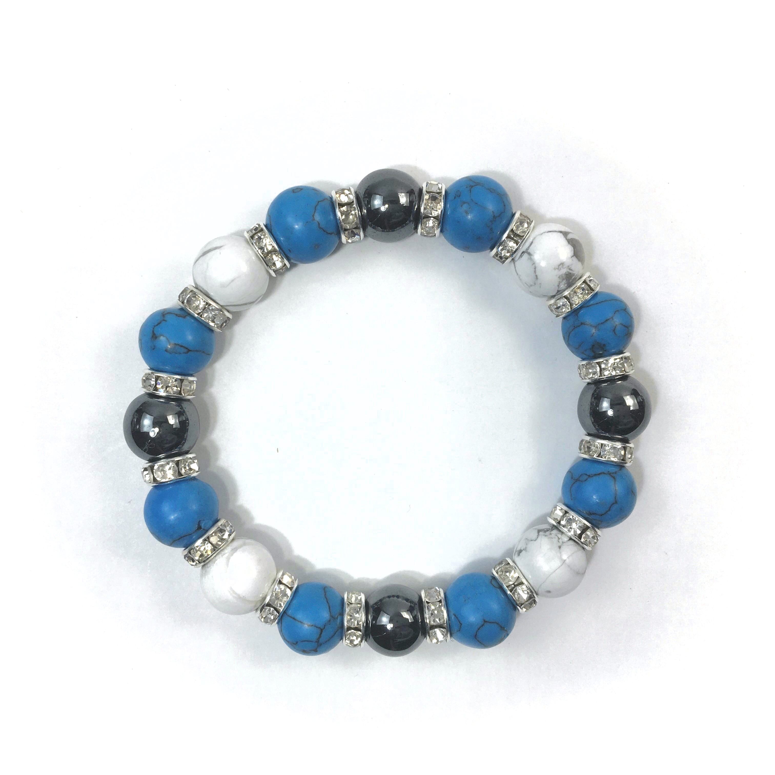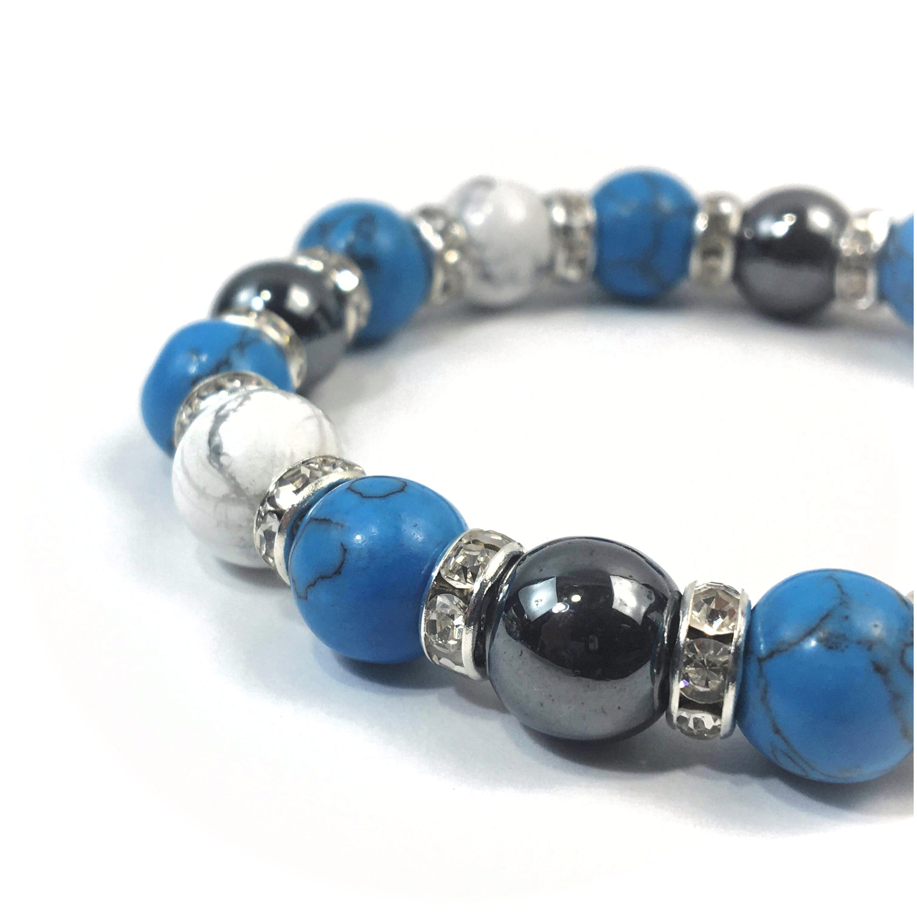 ヘマタイト×ハウライト×ターコイズ パワーストーンブレス 10mm(シルバー)メンズ・レディース 男性・女性 数珠ブレス 開運 ☆