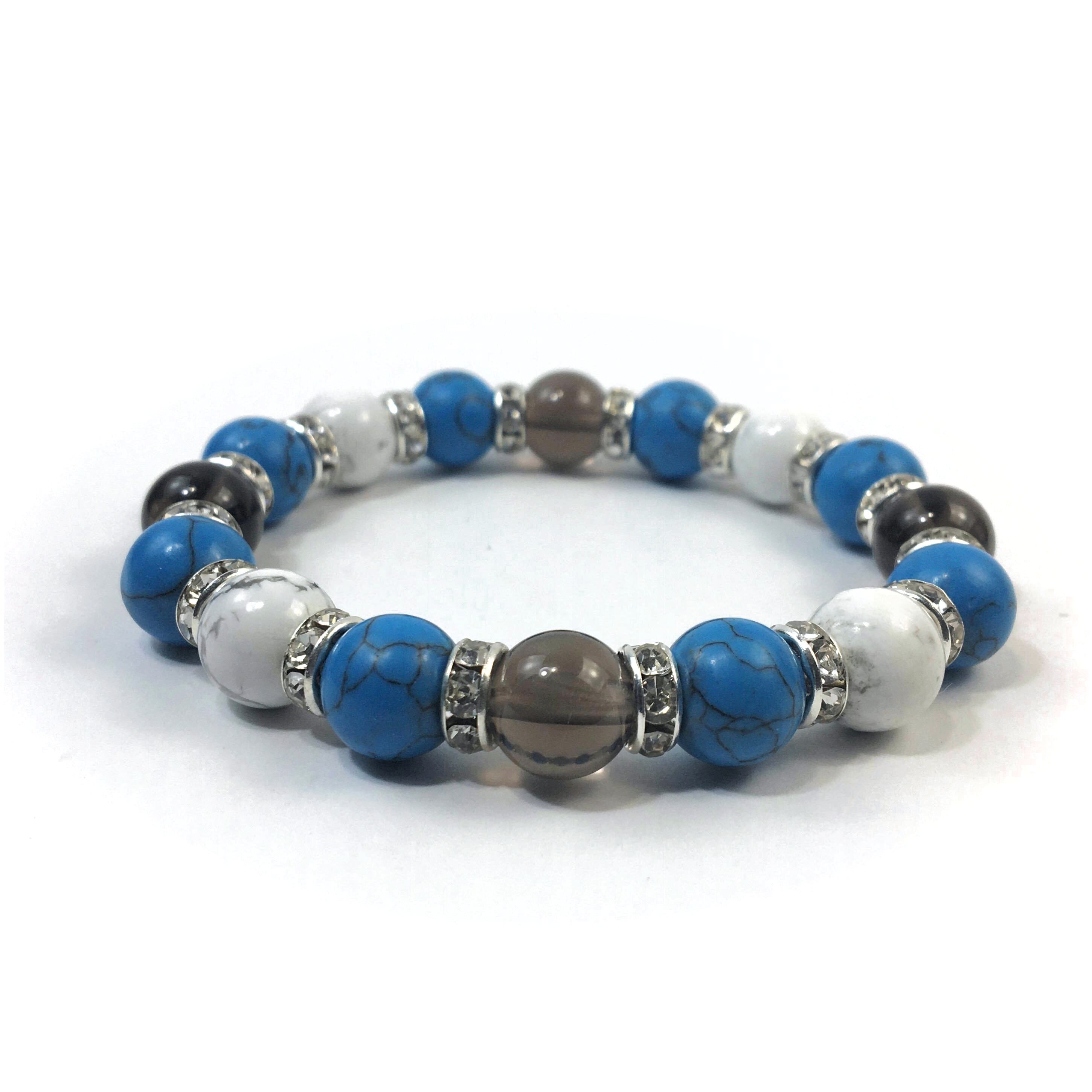 スモーキークォーツ ×ハウライト×ターコイズ パワーストーンブレス 10mm(シルバー)メンズ・レディース 男性・女性 数珠ブレス 開運 ☆