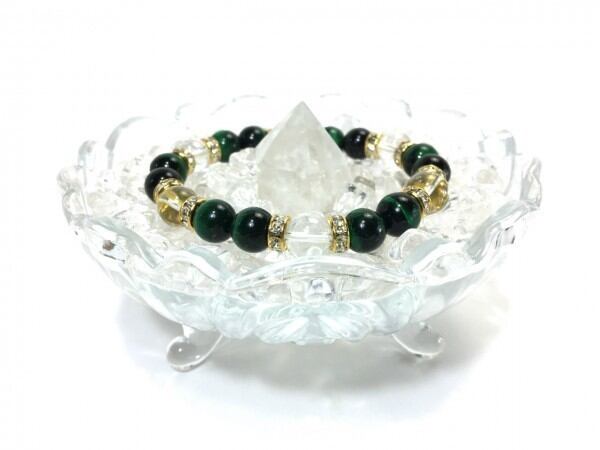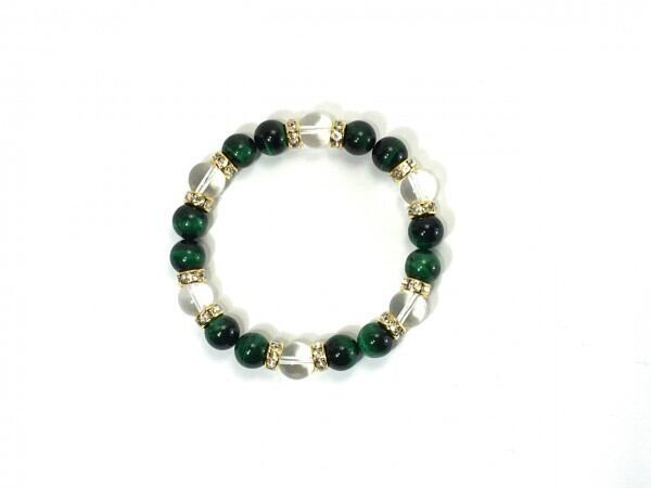 グリーンタイガーアイ×水晶 パワーストーン ブレスレット 天然石 10mm(ゴールド)メンズ・レディース 男性・女性 数珠ブレス 開運 ☆