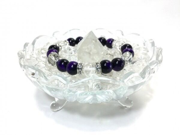 パープルタイガーアイ×水晶 パワーストーン ブレスレット 天然石 10mm(シルバー)メンズ・レディース 男性・女性 数珠ブレス 開運 ☆