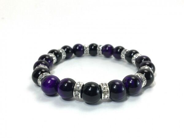 パープルタイガーアイ×オニキス パワーストーン ブレスレット 天然石 10mm(シルバー)メンズ・レディース 男性・女性 数珠ブレス 開運 ☆