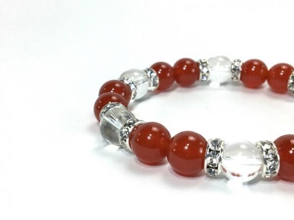 赤瑪瑙×水晶 パワーストーン ブレスレット 天然石 10mm(シルバー)メンズ・レディース 男性・女性 数珠ブレス 開運 ☆