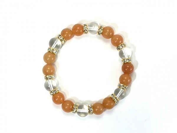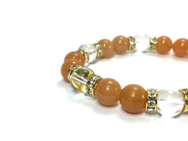 こちらは、レッドアベンチュリンと水晶を組み合わせたブレスレットです。間にはロンデルを挟み高級感あるデザインに仕上がっています。石大きさは腕にも馴染みやすいように10mm玉で内周約17cm(伸可能)です。数に限りがございますので気になる方はお早めにどうぞ。