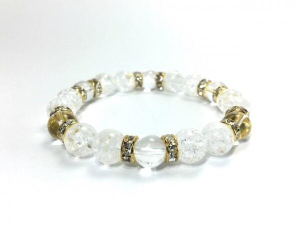 クラック水晶×水晶 パワーストーン ブレスレット 天然石 10mm(ゴールド)メンズ・レディース 男性・女性 数珠ブレス 開運 ☆