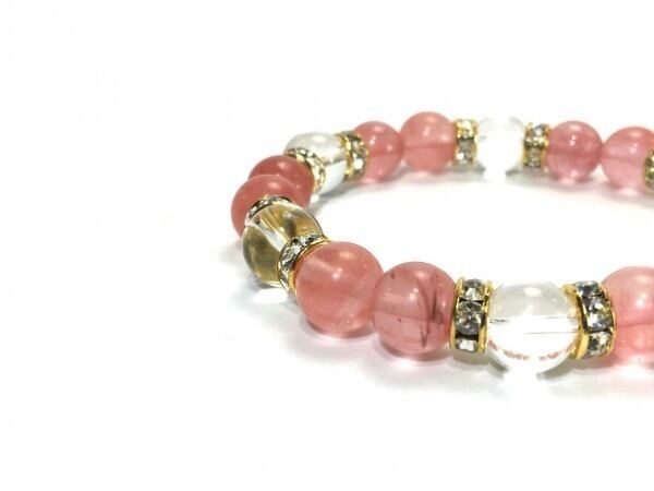 チェリークォーツ×水晶 パワーストーン ブレスレット 天然石 10mm(ゴールド)メンズ・レディース 男性・女性 数珠ブレス 開運 ☆