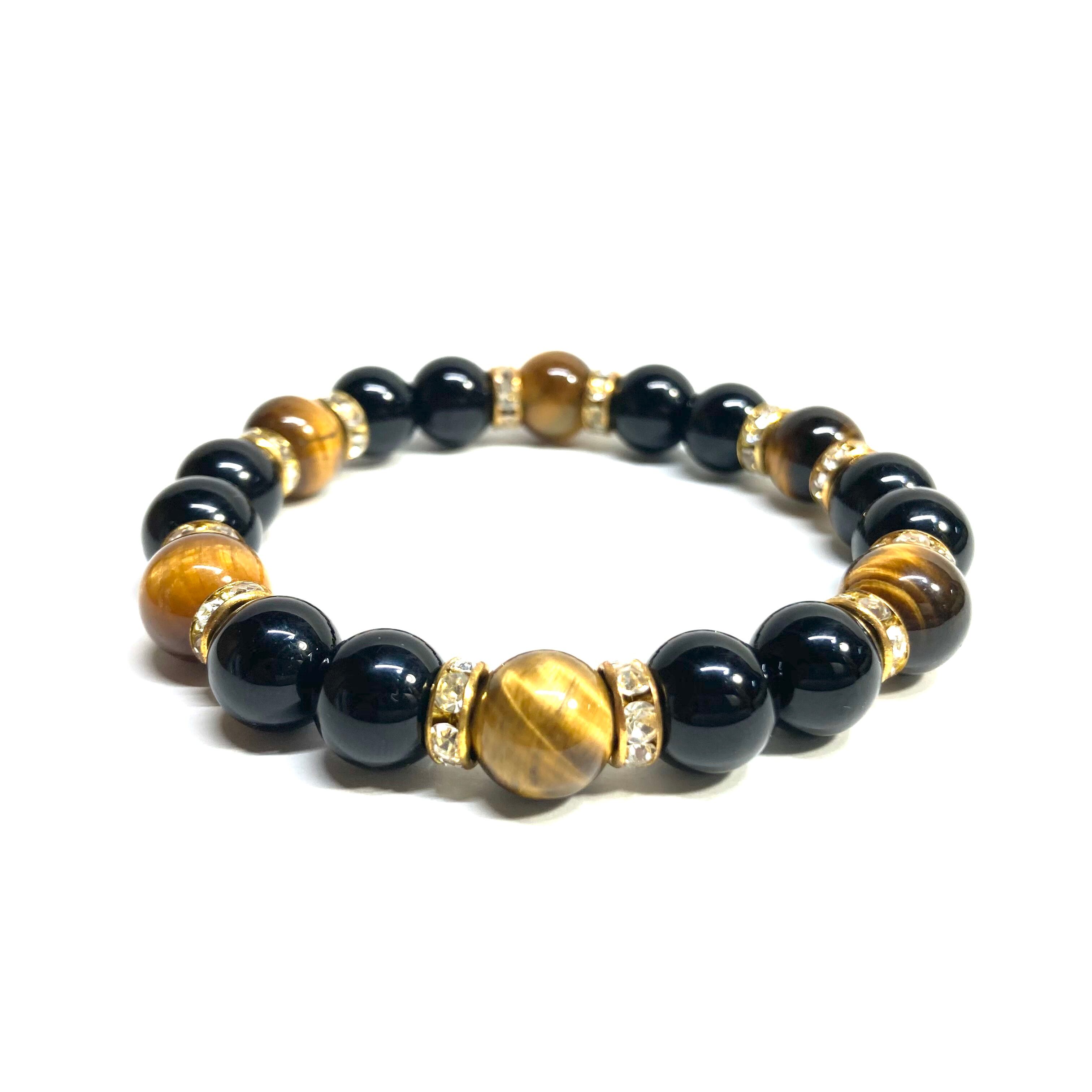 モリオン&タイガーアイ パワーストーン ブレスレット 天然石ブレス (ゴールド) 10mm メンズ・レディース 厄除け 金運 お守り ☆