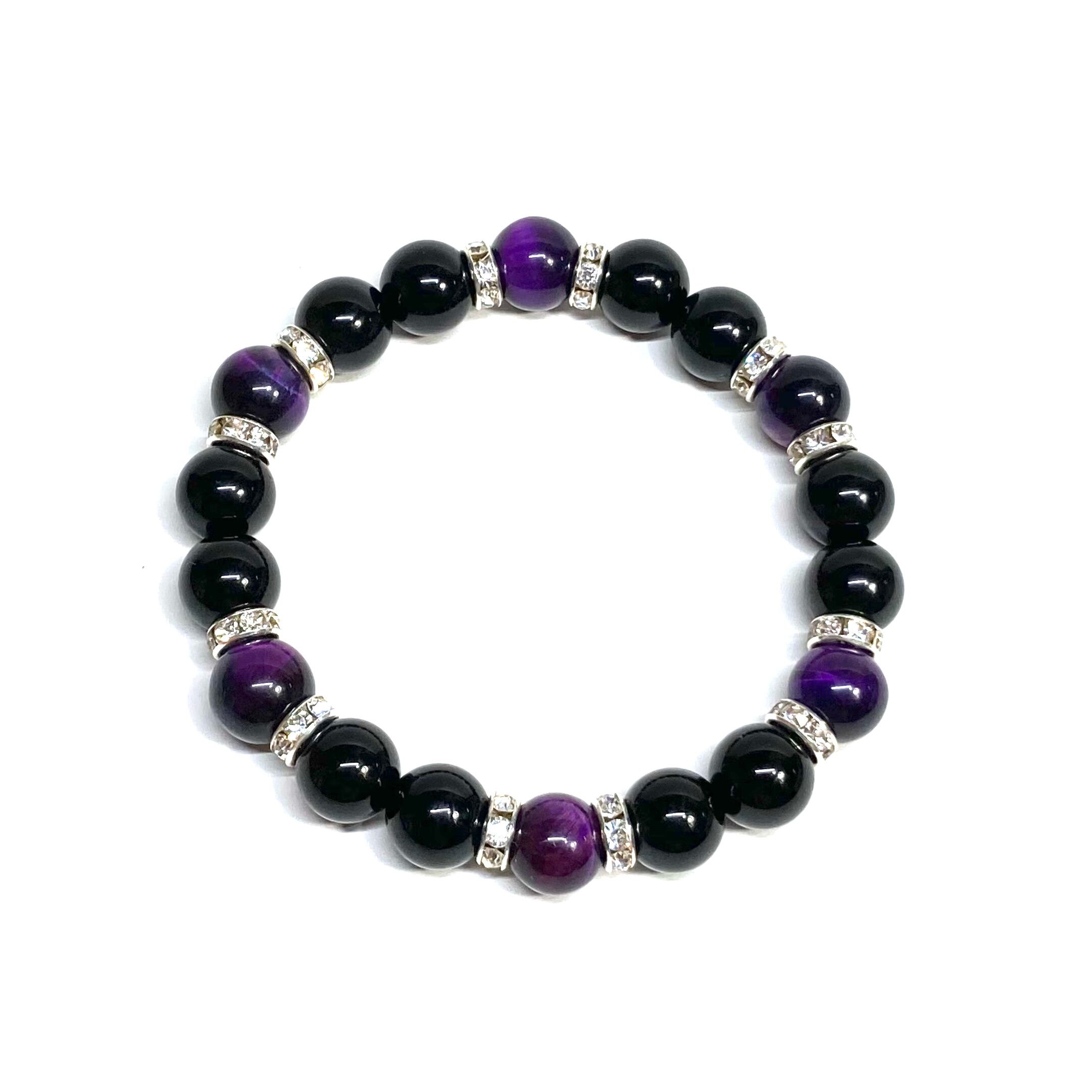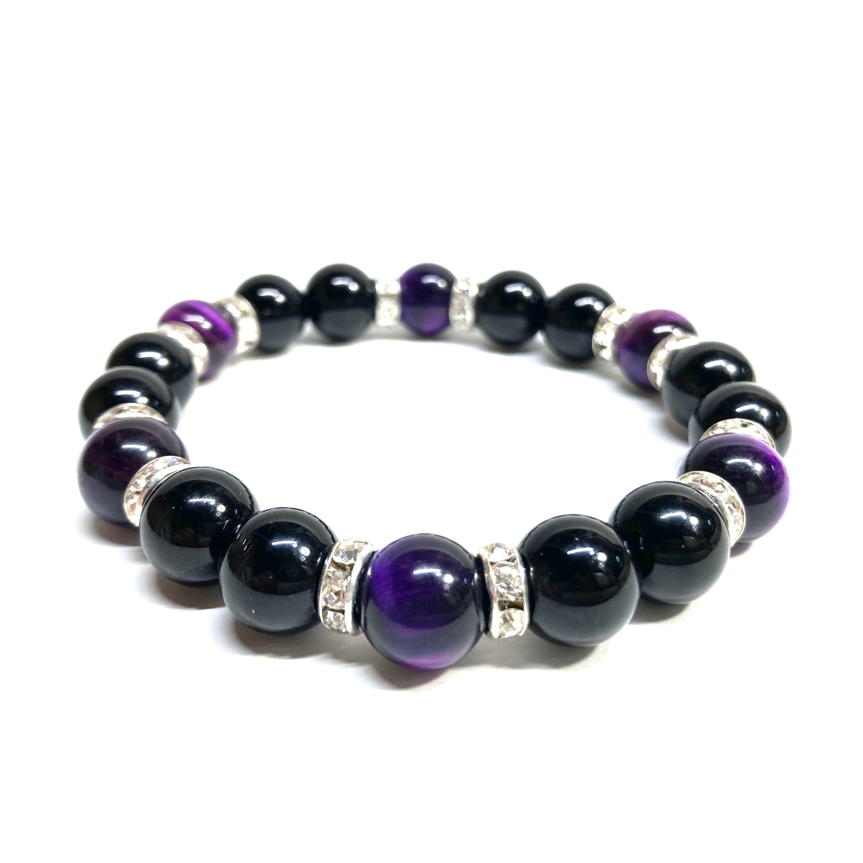 モリオン&パープル タイガーアイ パワーストーン ブレスレット 天然石ブレス (シルバー) 10mm メンズ・レディース 厄除け 金運 お守り ☆
