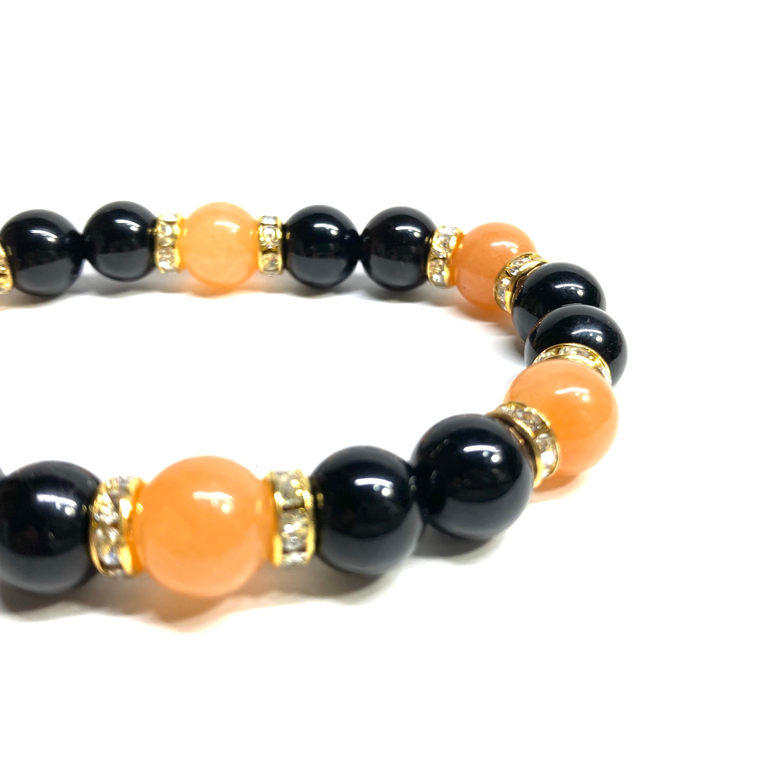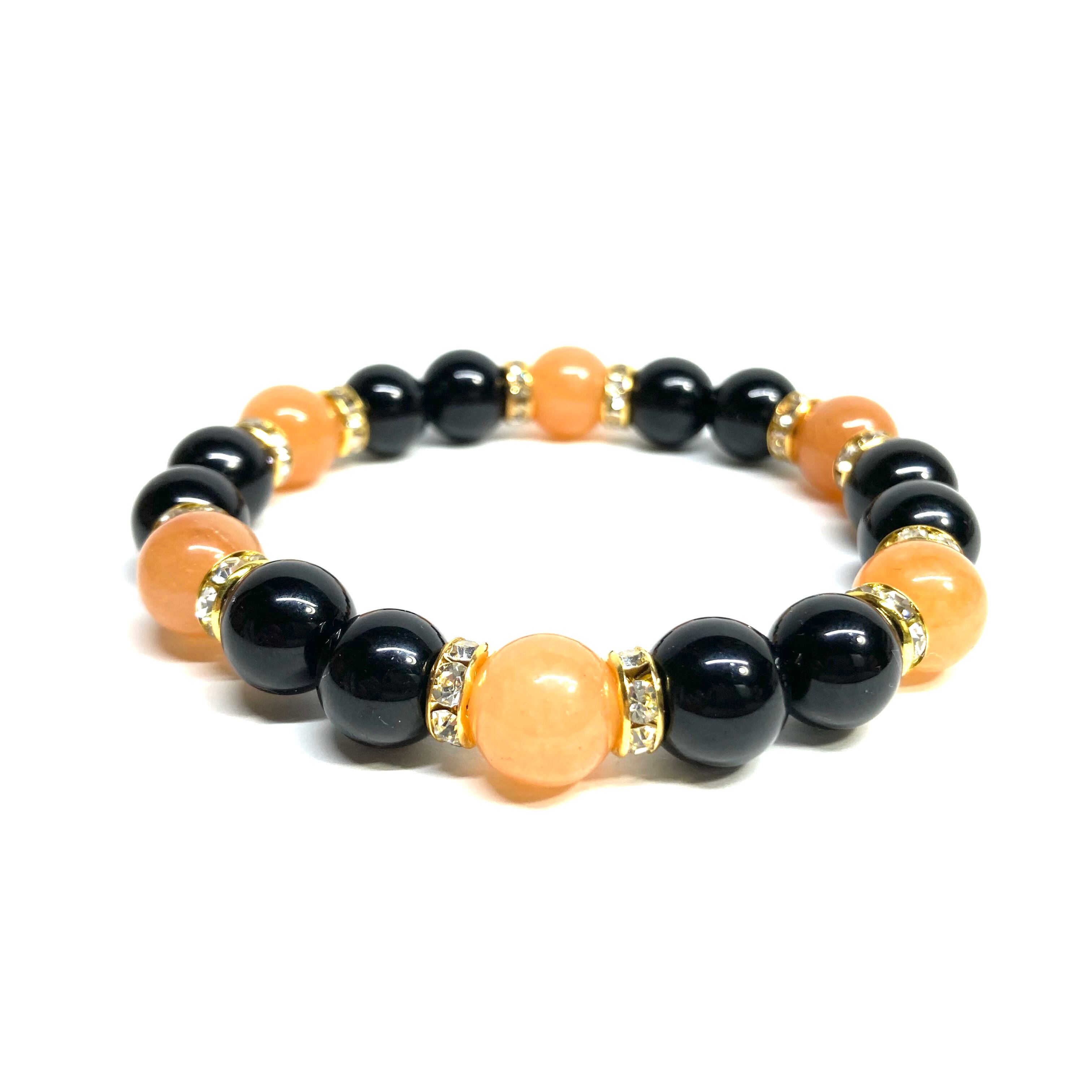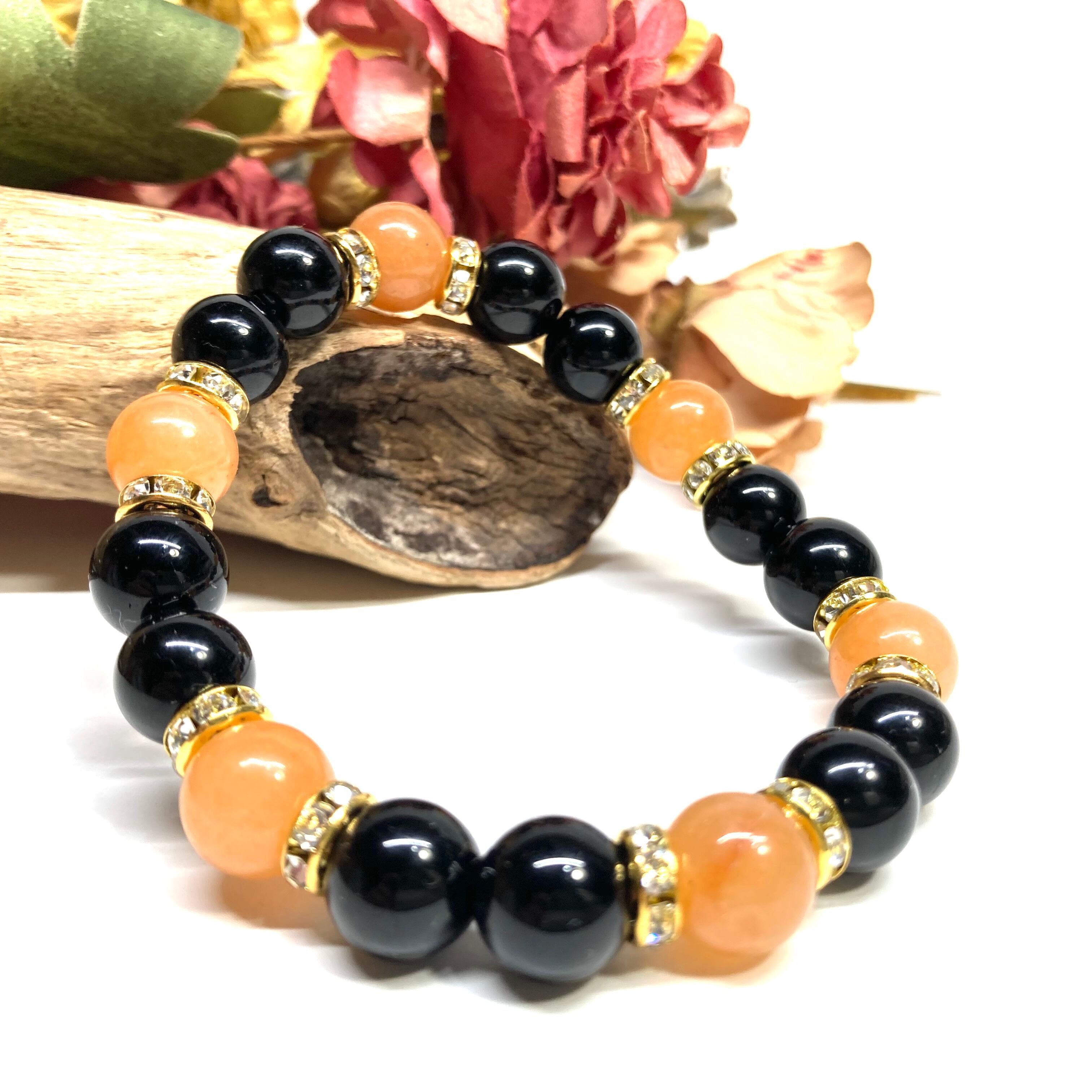 こちらは、モリオンとレッドアベンチュリンを組み合わせたパワーストーンブレスレットです。間にはロンデルを挟み高級感あるデザインに仕上げております。石大きさは腕にも馴染みやすいように10mm玉で内径約18cm(伸可能)です。 数に限りがございますので気になる方はお早めにどうぞ。