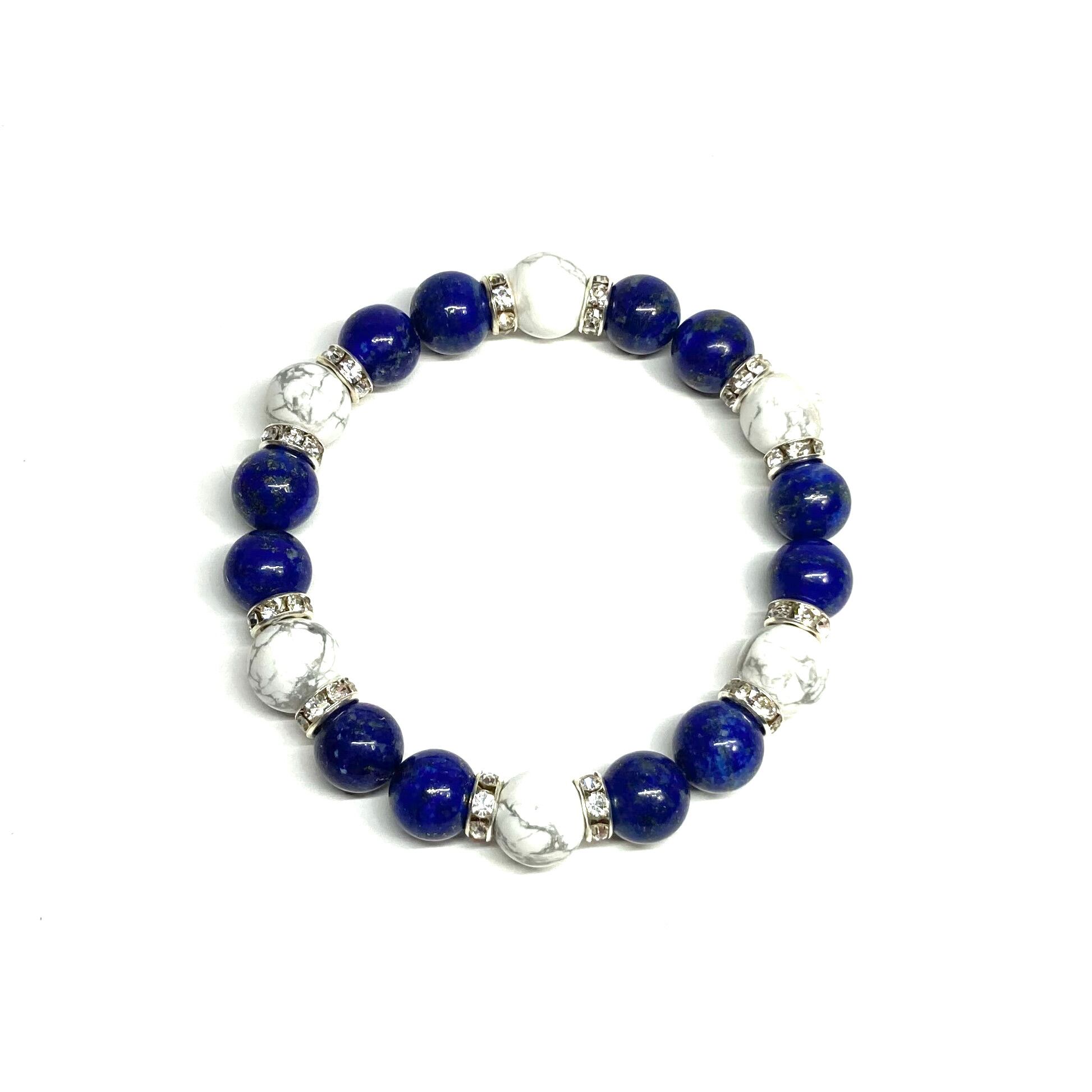 ラピスラズリ&ハウライト パワーストーン ブレスレット 天然石ブレス (シルバー) 10mm メンズ・レディース ストレス解消 お守り ☆