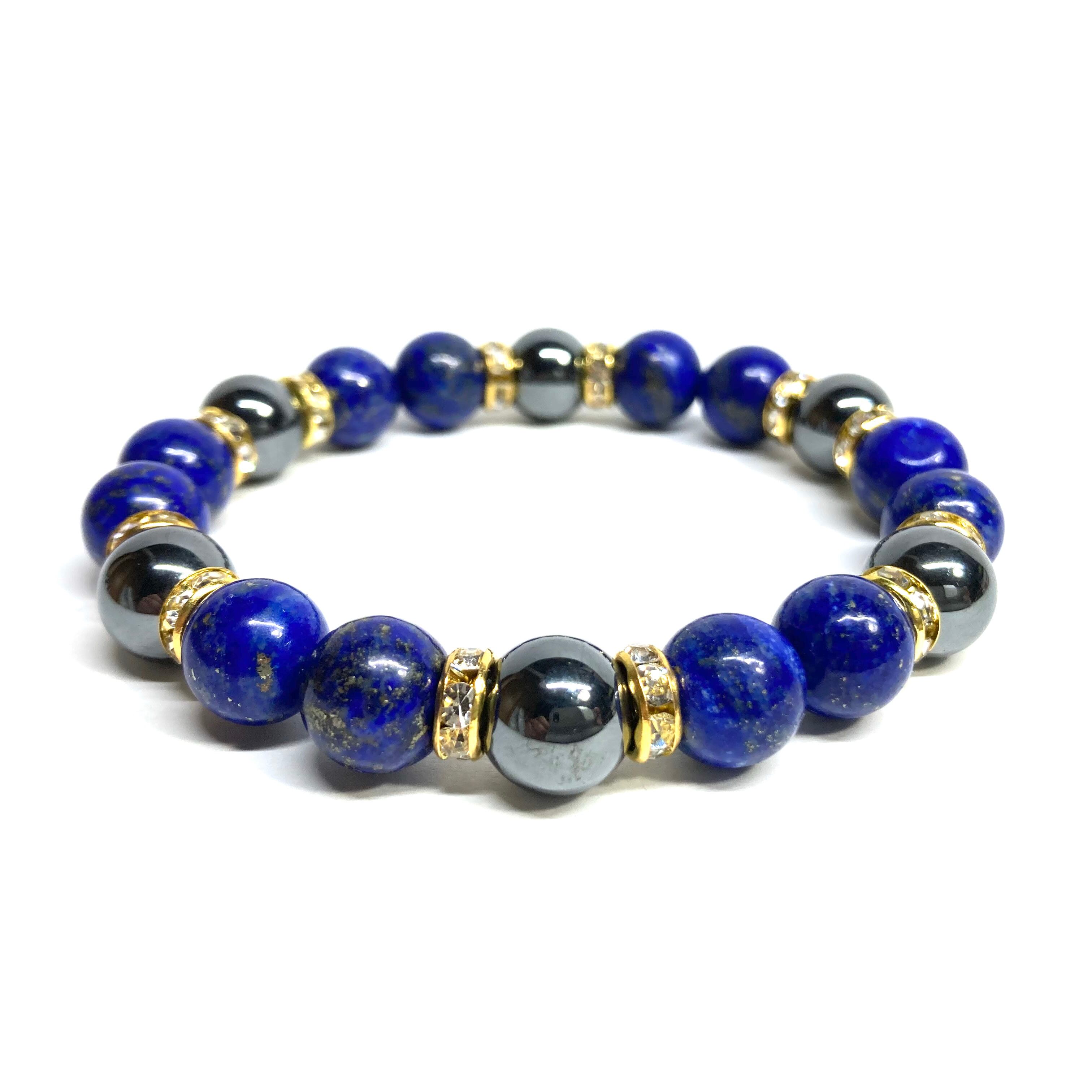 ラピスラズリ&ヘマタイト パワーストーン ブレスレット 天然石ブレス (ゴールド) 10mm メンズ・レディース 健康運 お守り ☆