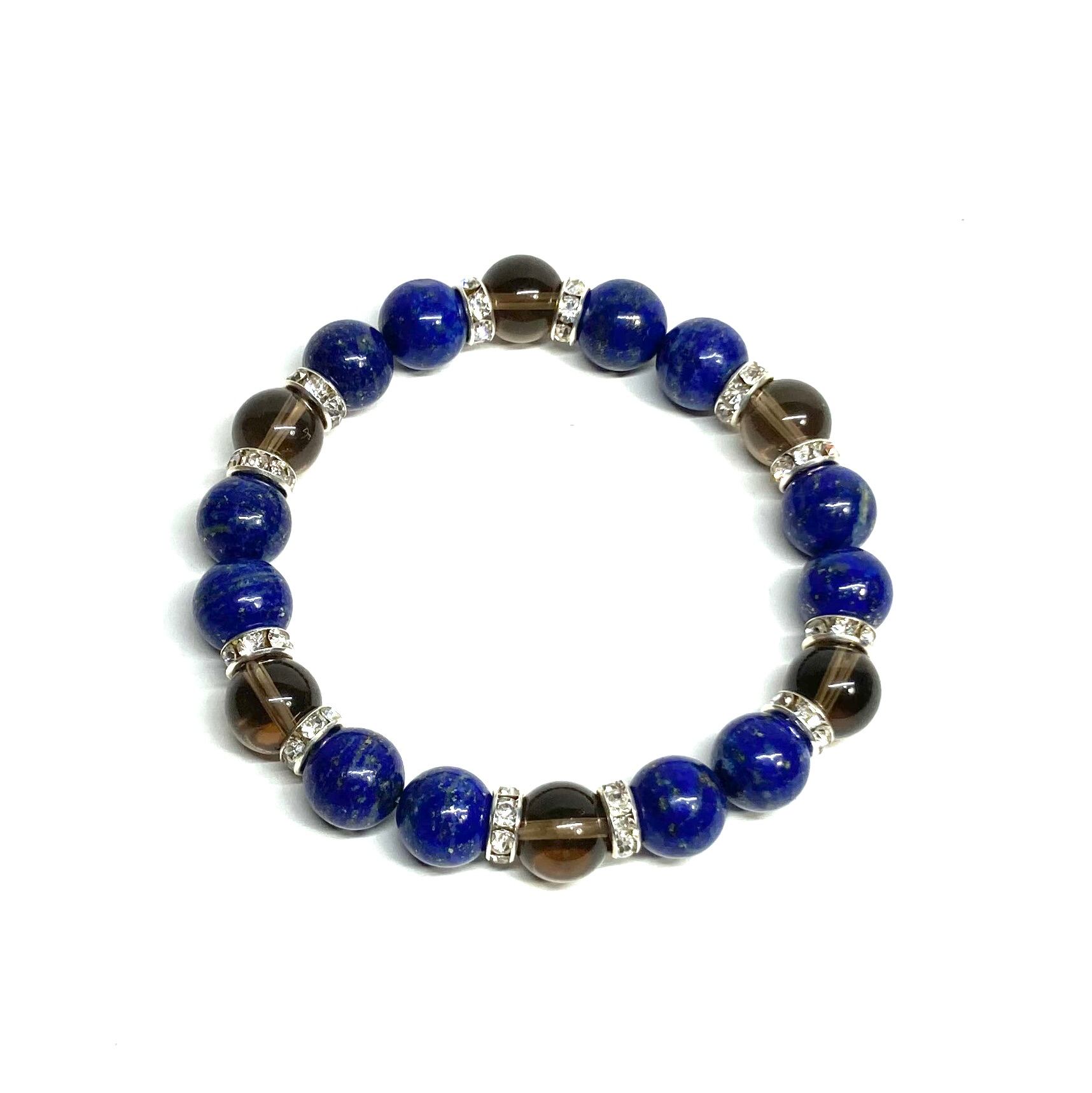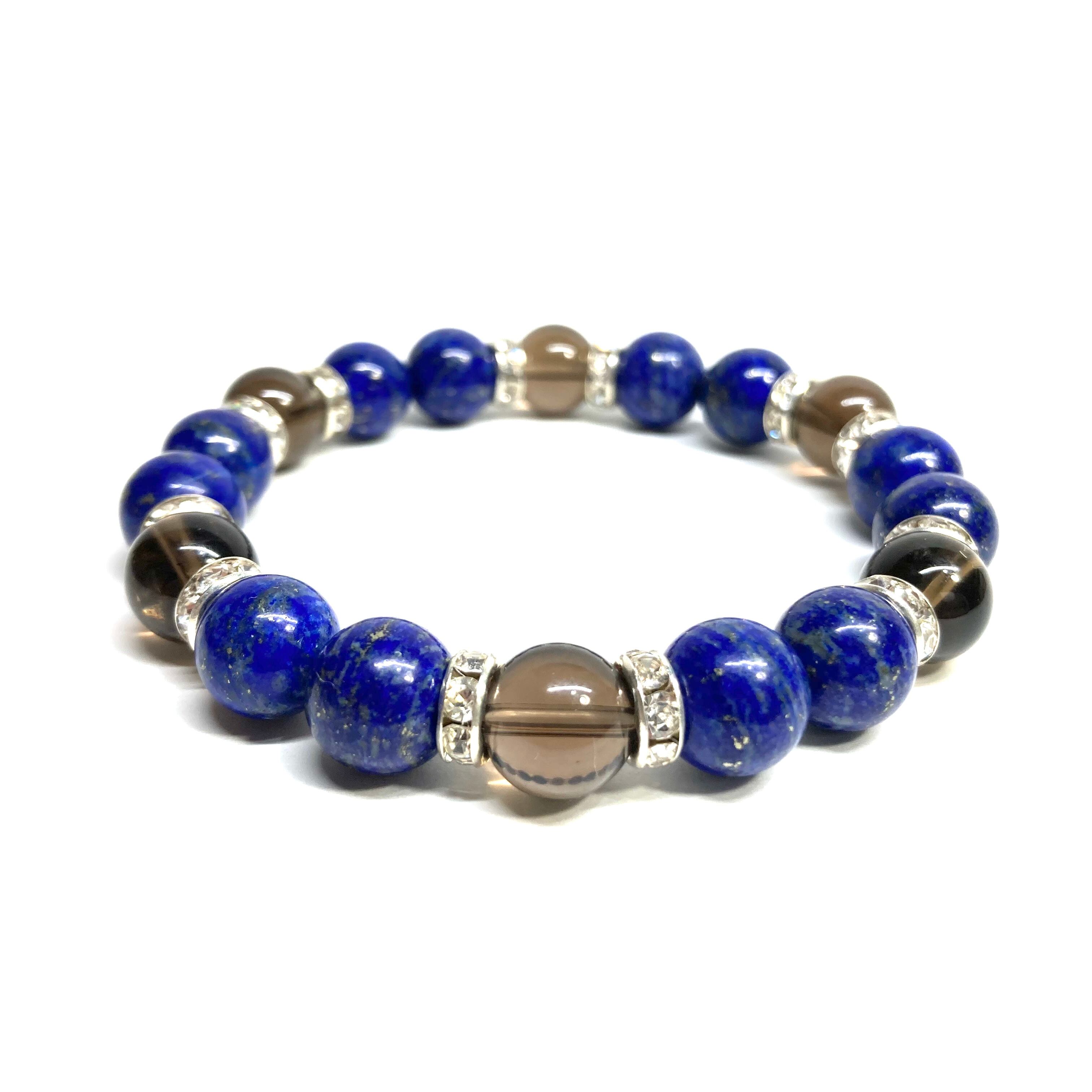 ラピスラズリ&スモーキークォーツ パワーストーン ブレスレット 天然石ブレス (シルバー) 10mm メンズ・レディース 癒し お守り ☆