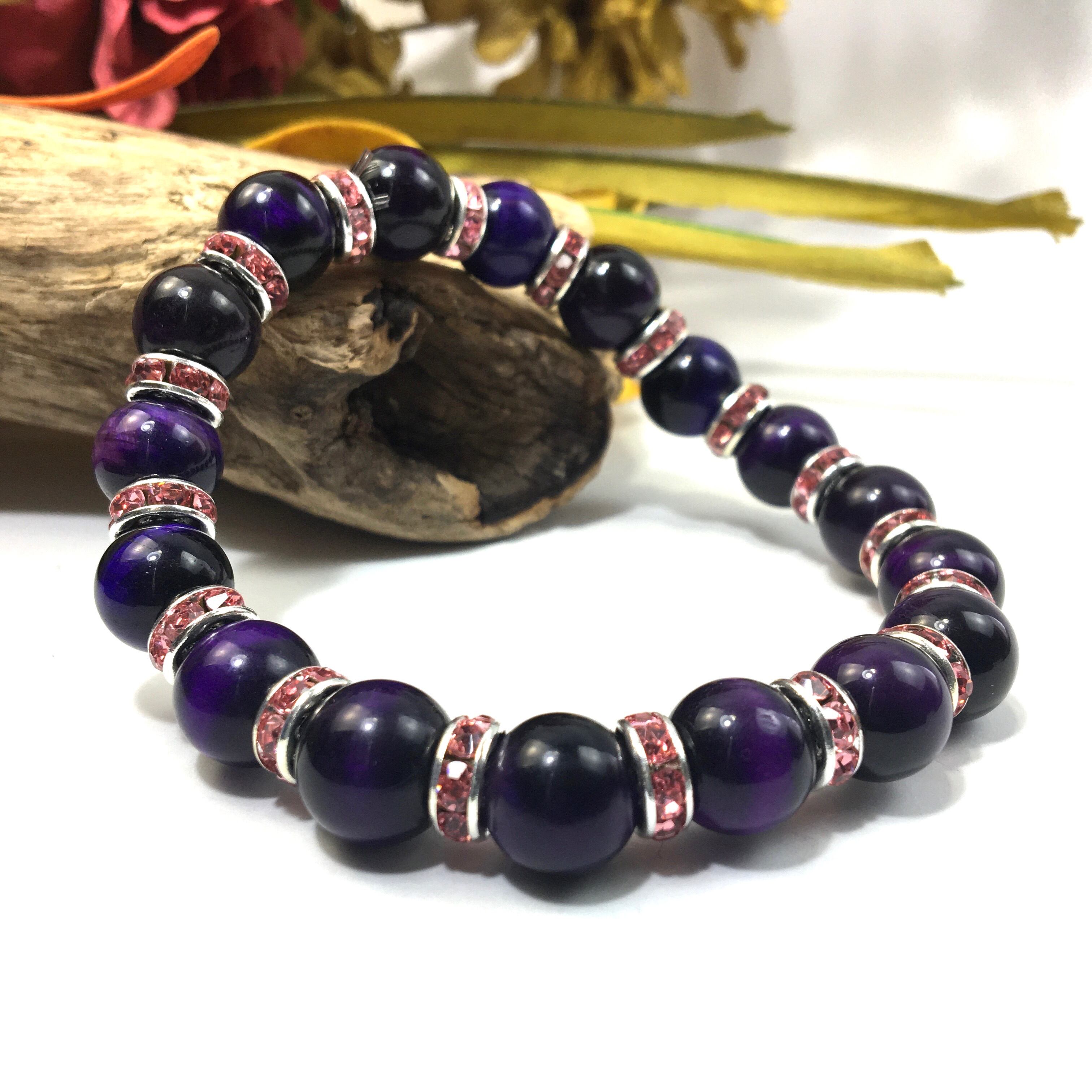 パープルタイガーアイ パワーストーン ブレスレット 10mm (ピンク)メンズ・レディース 男性・女性 数珠ブレス 開運 ☆