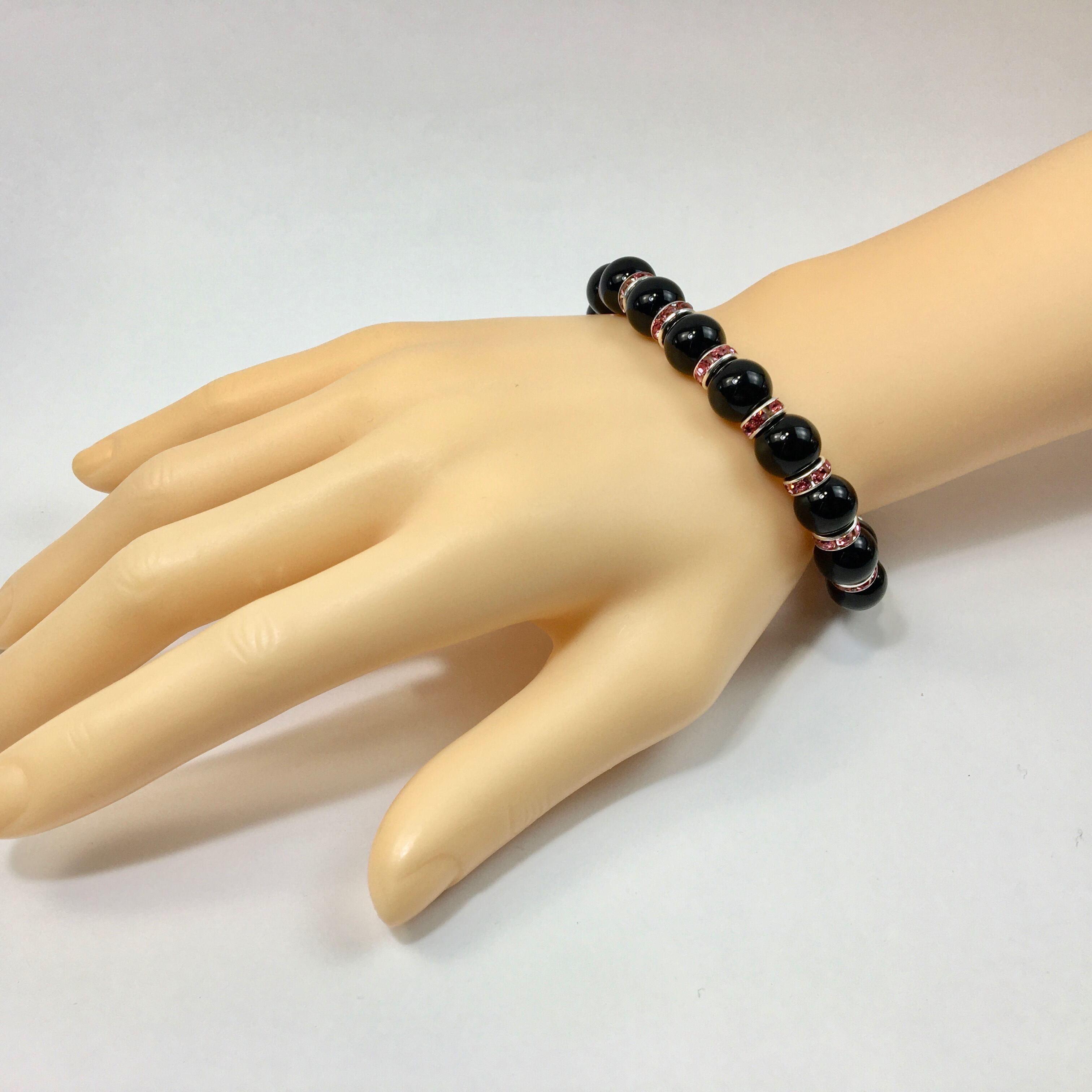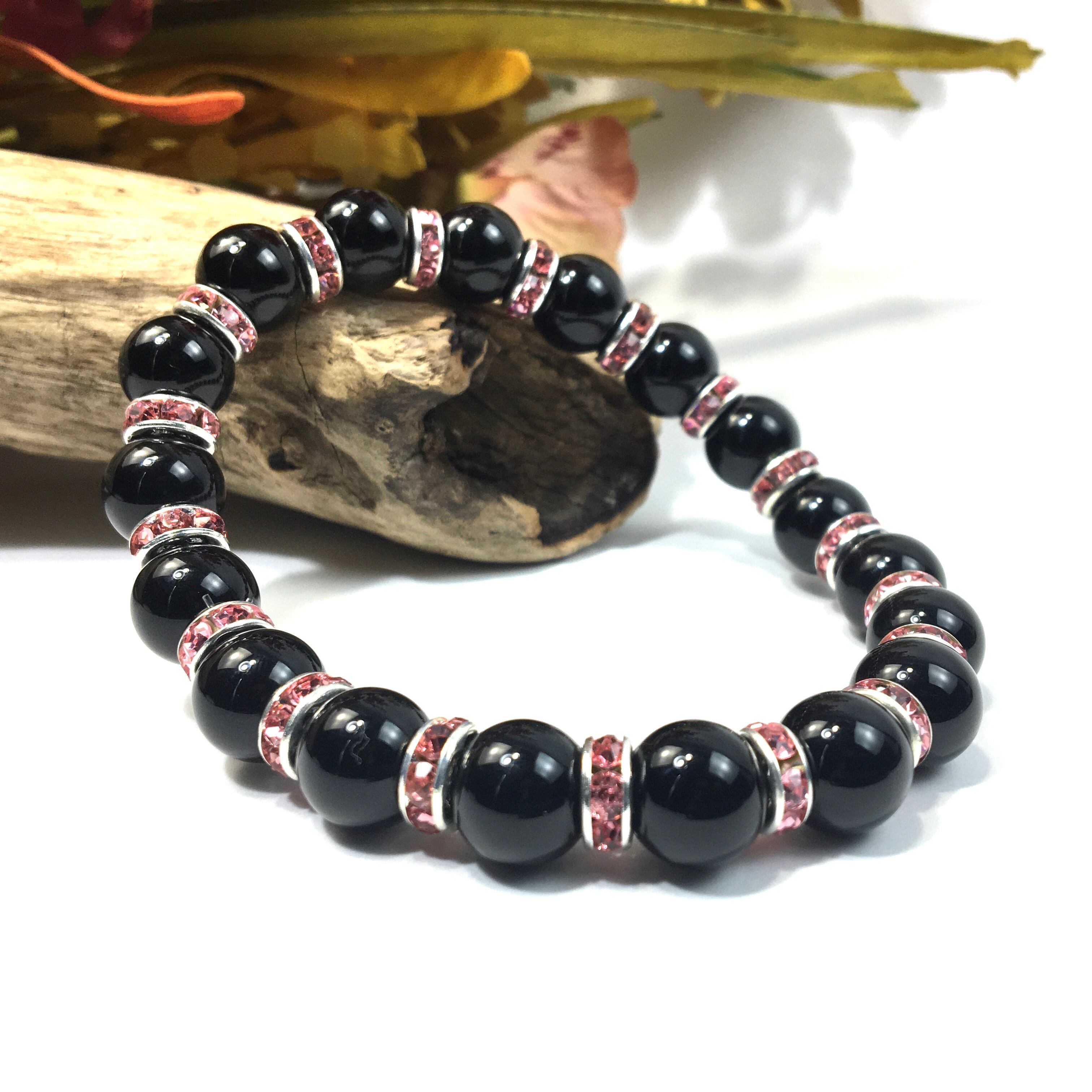 オニキス パワーストーン ブレスレット 天然石 10mm (ピンク)メンズ・レディース 男性・女性 数珠ブレス 開運 ☆