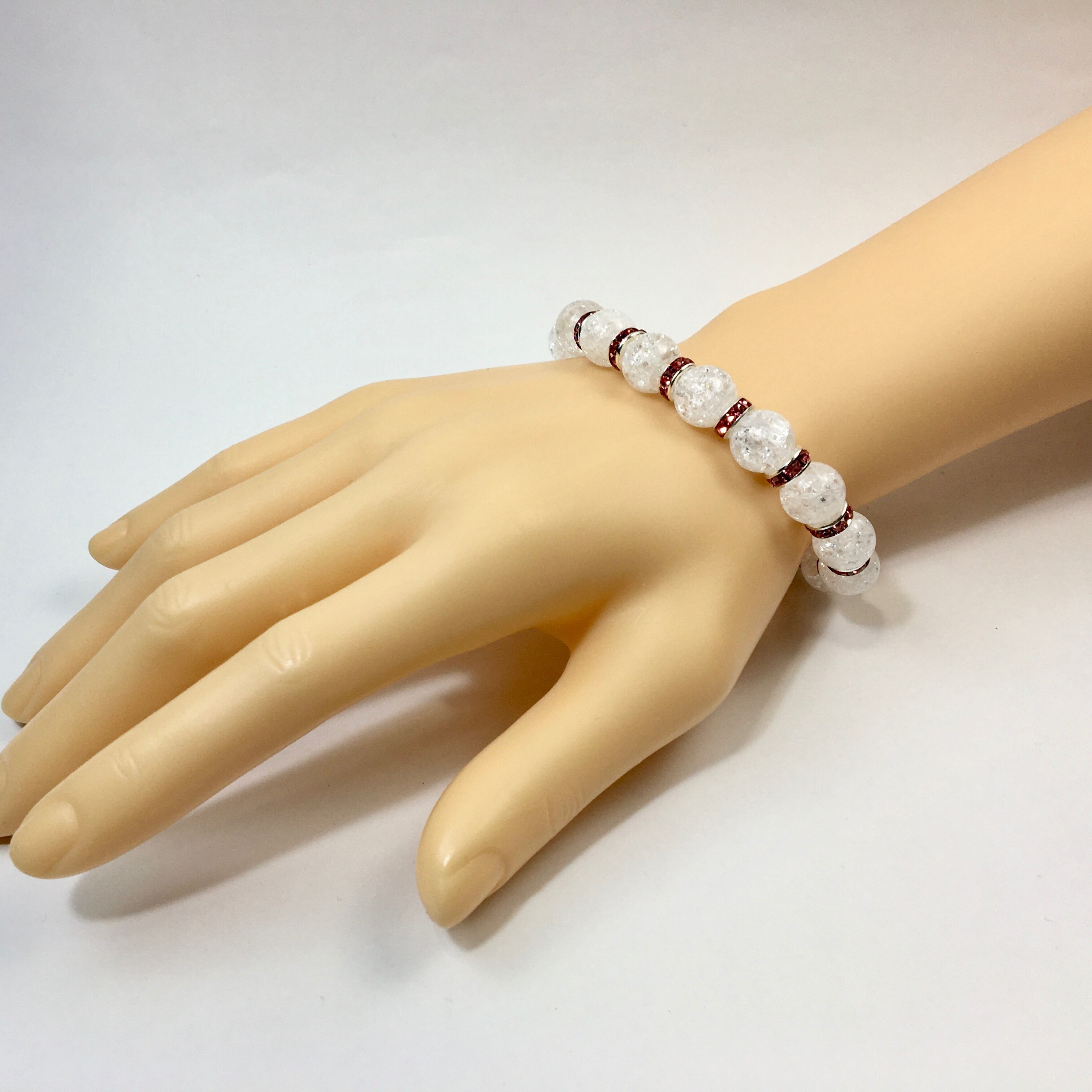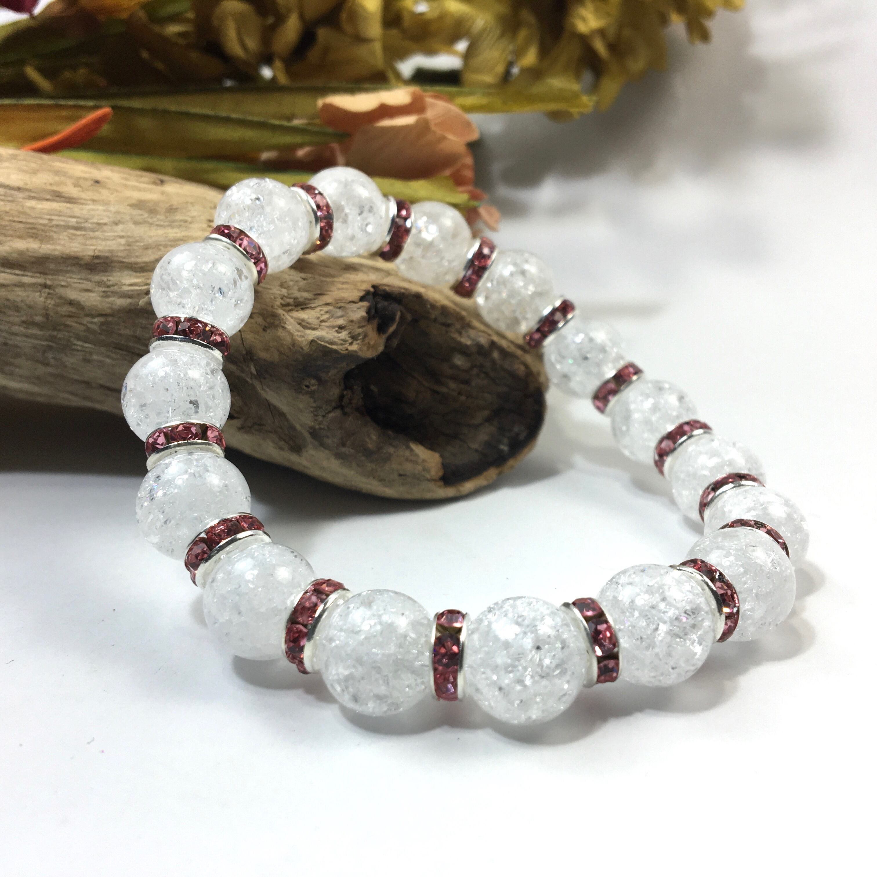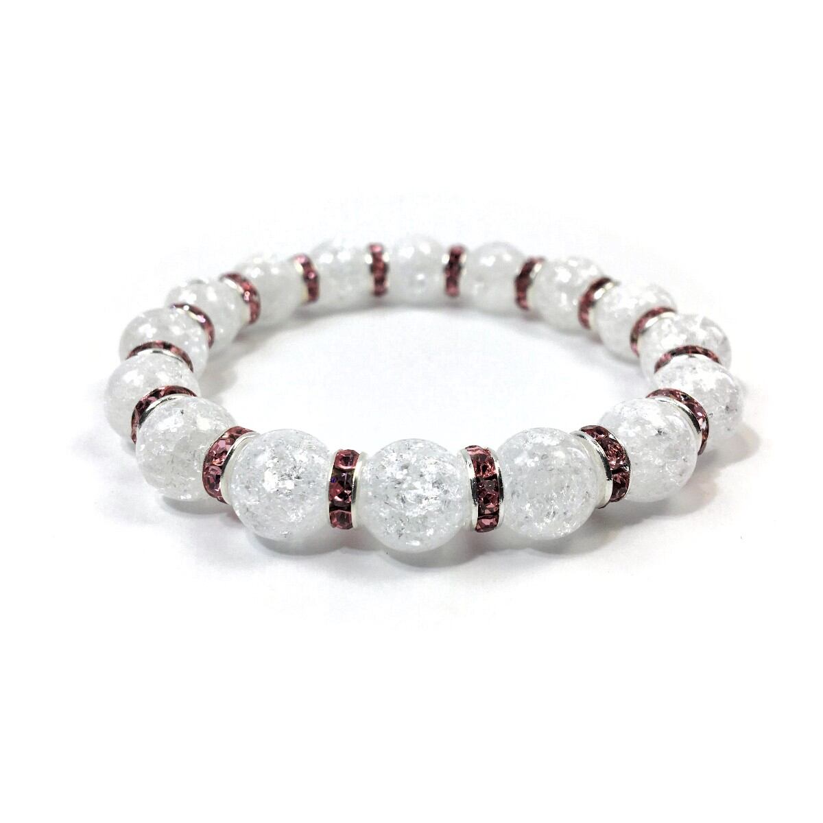 クラック水晶 パワーストーン ブレスレット 天然石 10mm (ピンク)メンズ・レディース 男性・女性 数珠ブレス 開運 ☆