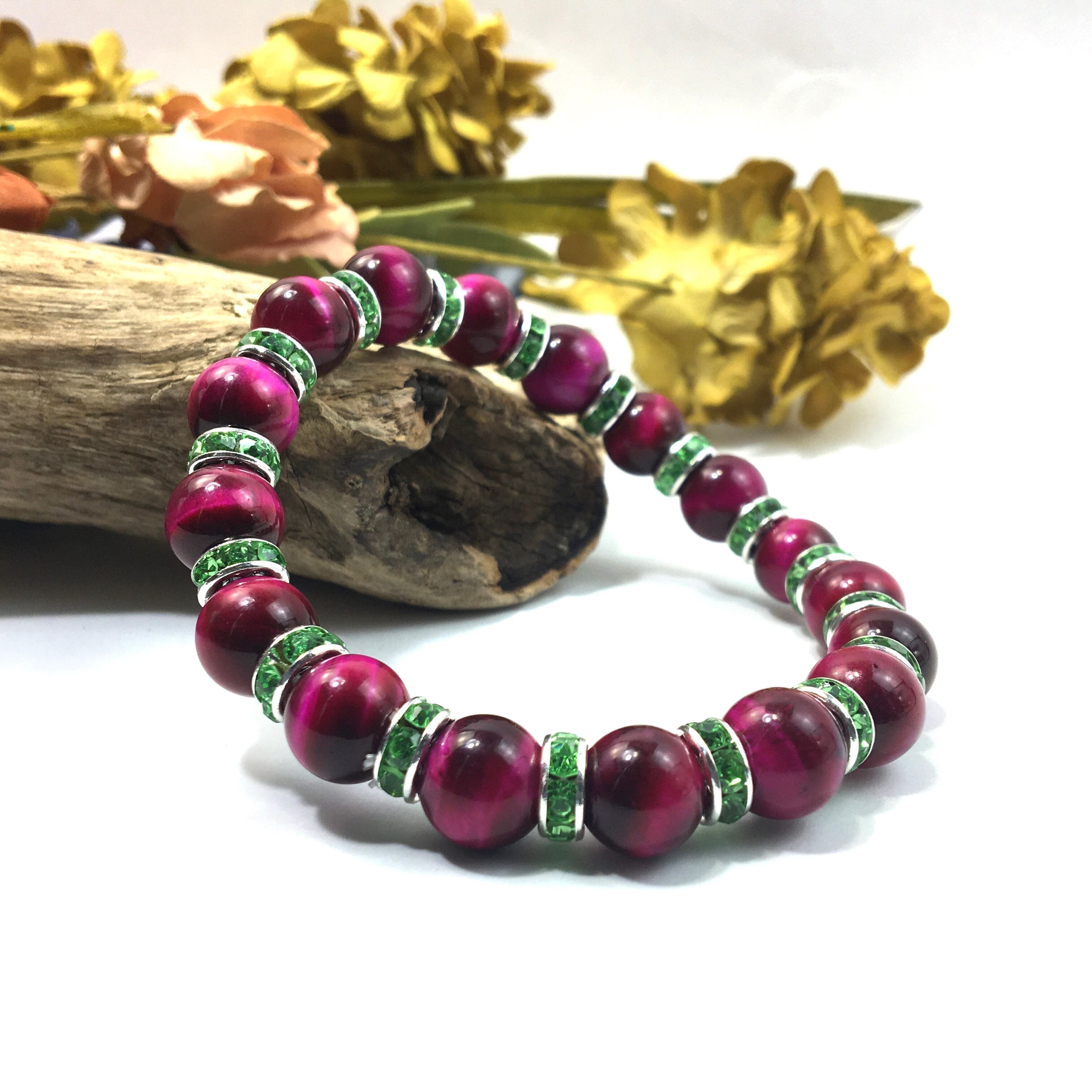 ピンクタイガーアイ パワーストーン ブレスレット 10mm (グリーン)メンズ・レディース 男性・女性 数珠ブレス 開運 ☆