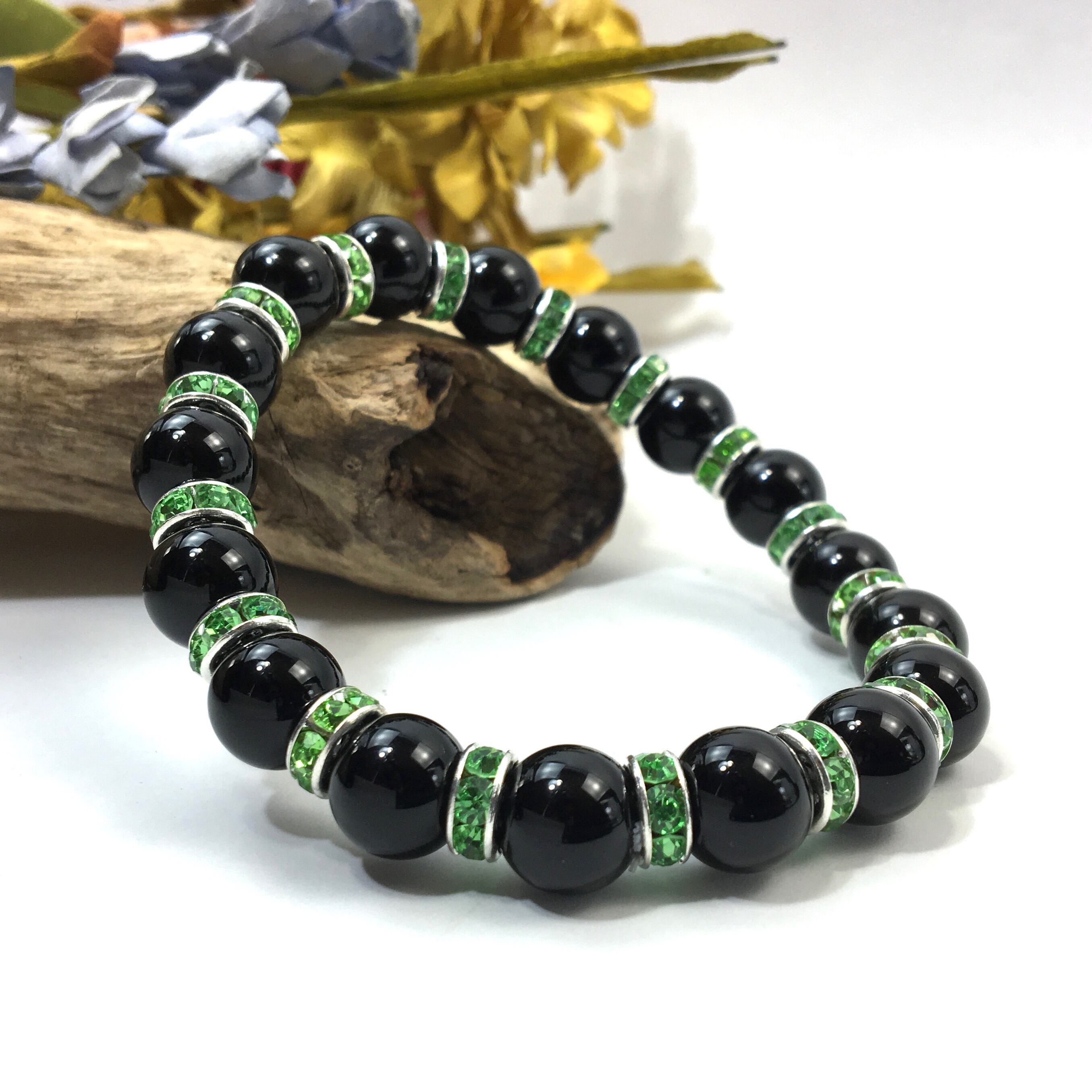 オニキス パワーストーン ブレスレット 天然石 10mm (グリーン)メンズ・レディース 男性・女性 数珠ブレス 開運 ☆