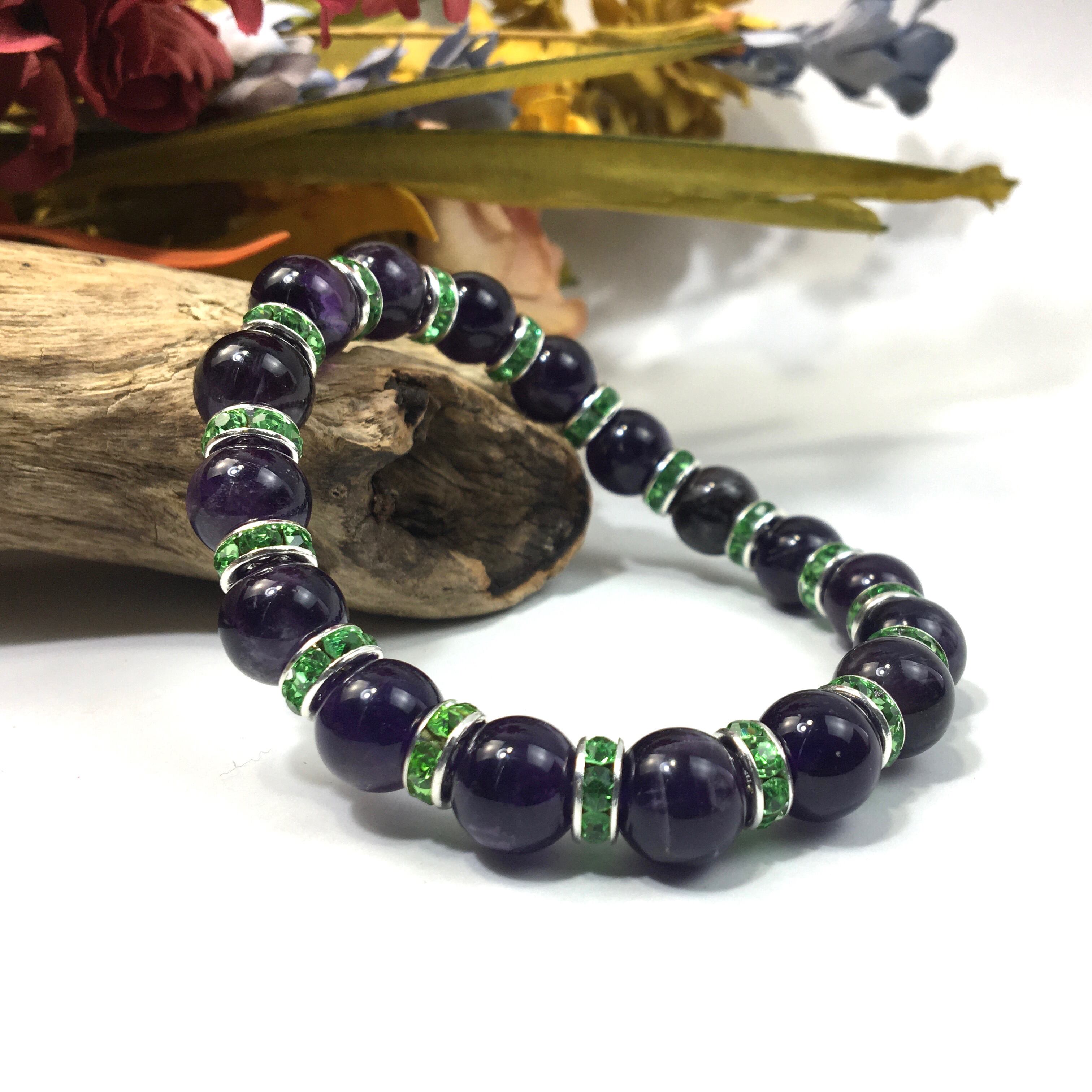 アメジスト パワーストーン ブレスレット 天然石 10mm (グリーン)メンズ・レディース 男性・女性 数珠ブレス 開運 ☆
