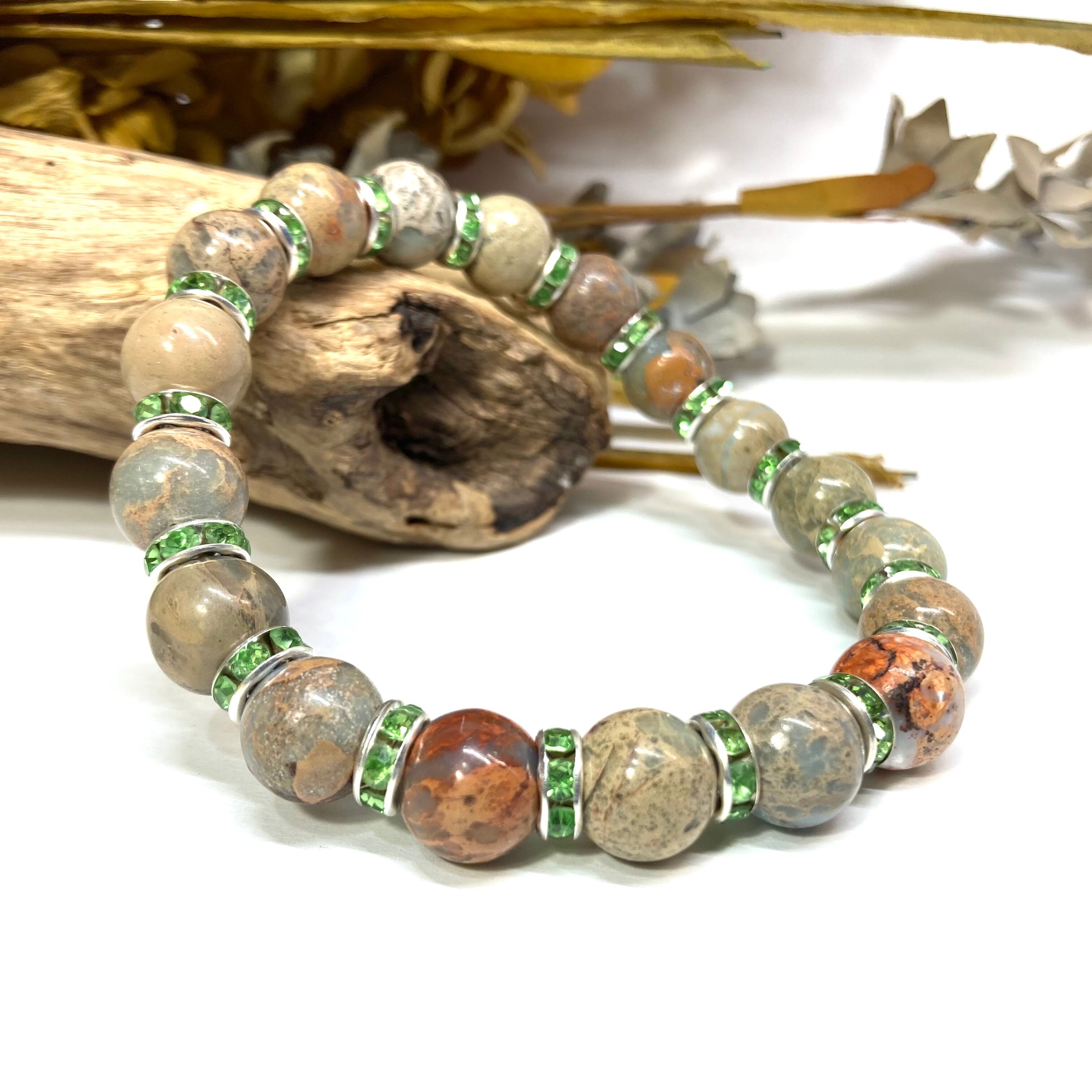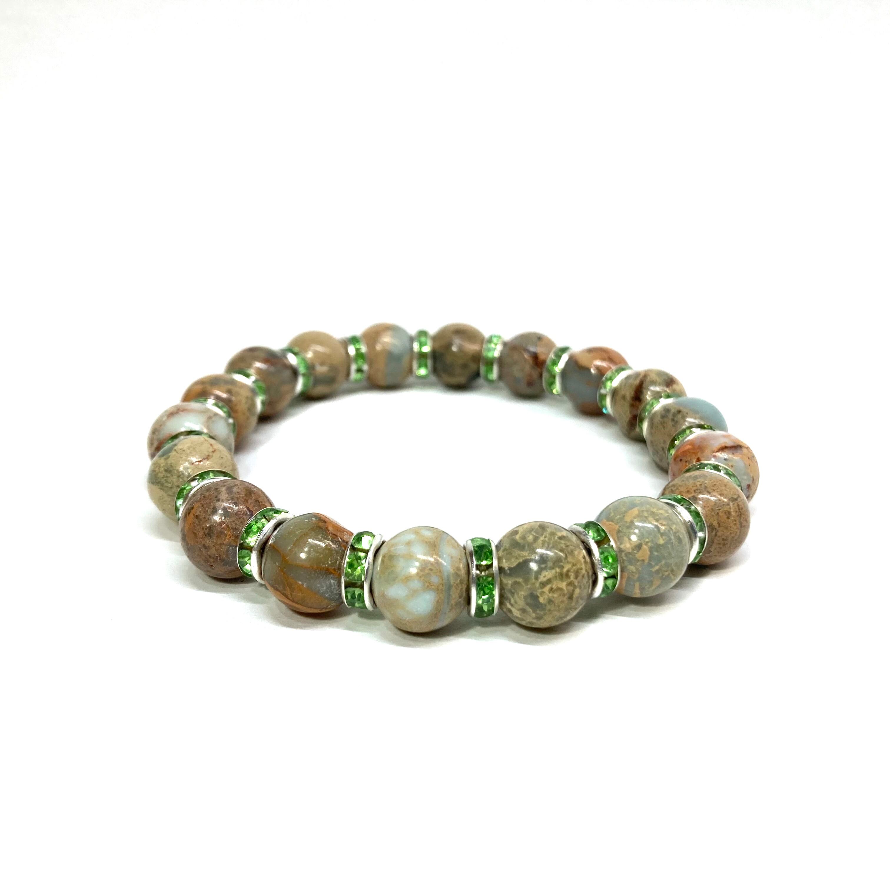 インプレッションストーン パワーストーン ブレスレット 10mm (グリーン)メンズ・レディース 男性・女性 数珠ブレス 開運 ☆