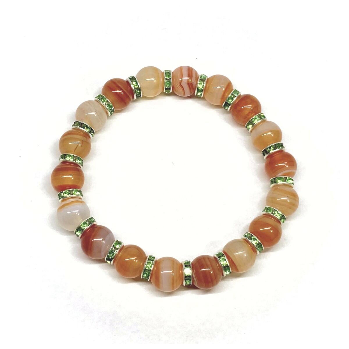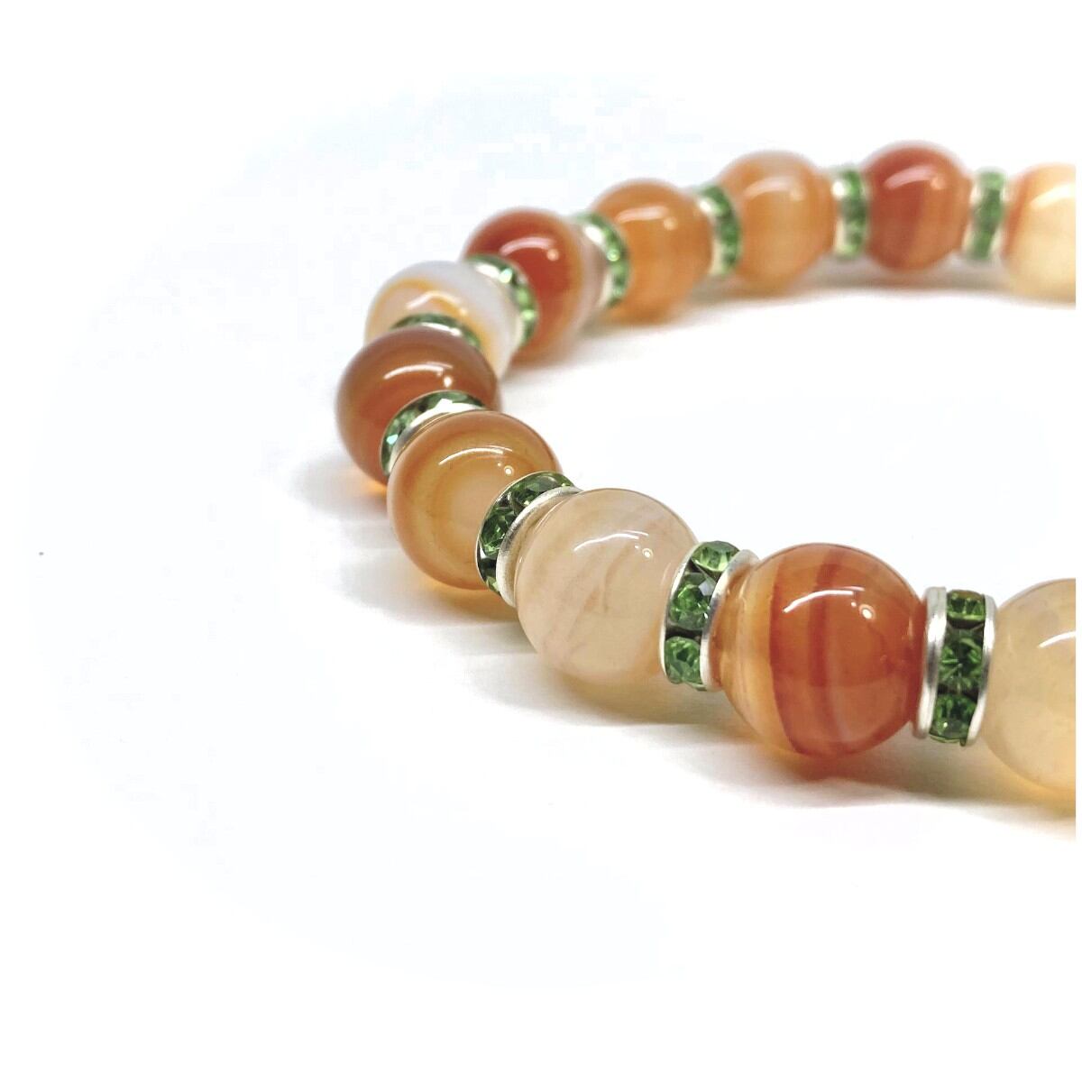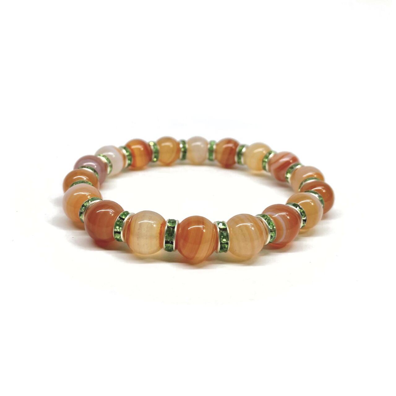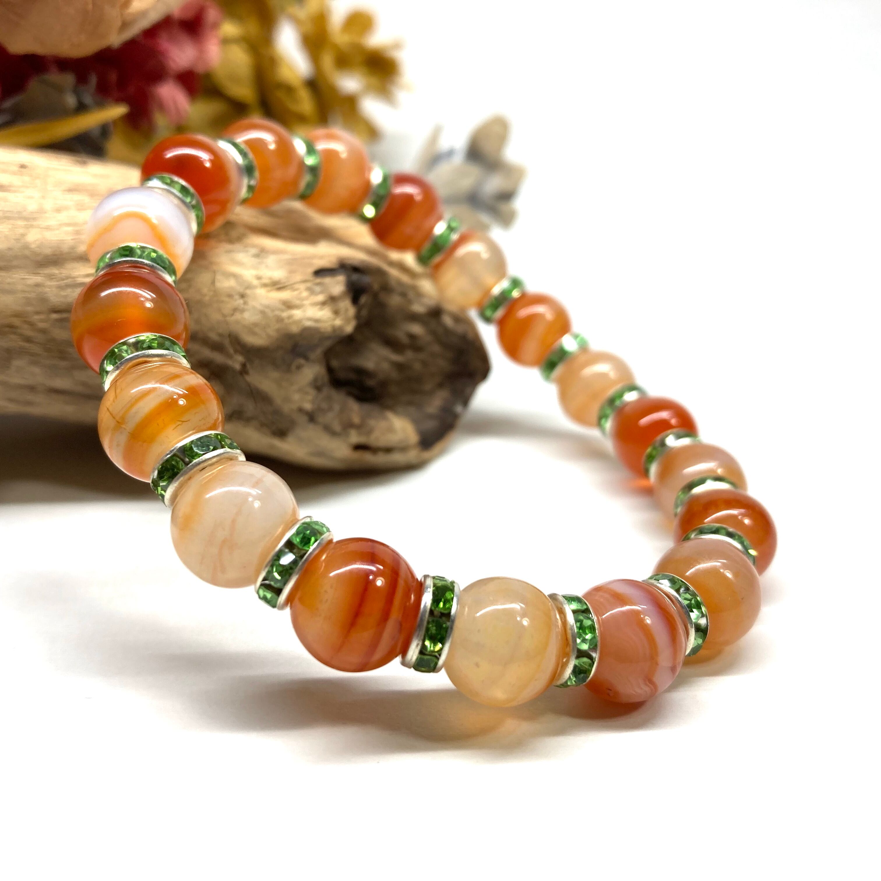 カーネリアン・サードニクス パワーストーン ブレスレット 10mm (グリーン)メンズ・レディース 男性・女性 数珠ブレス 開運 ☆