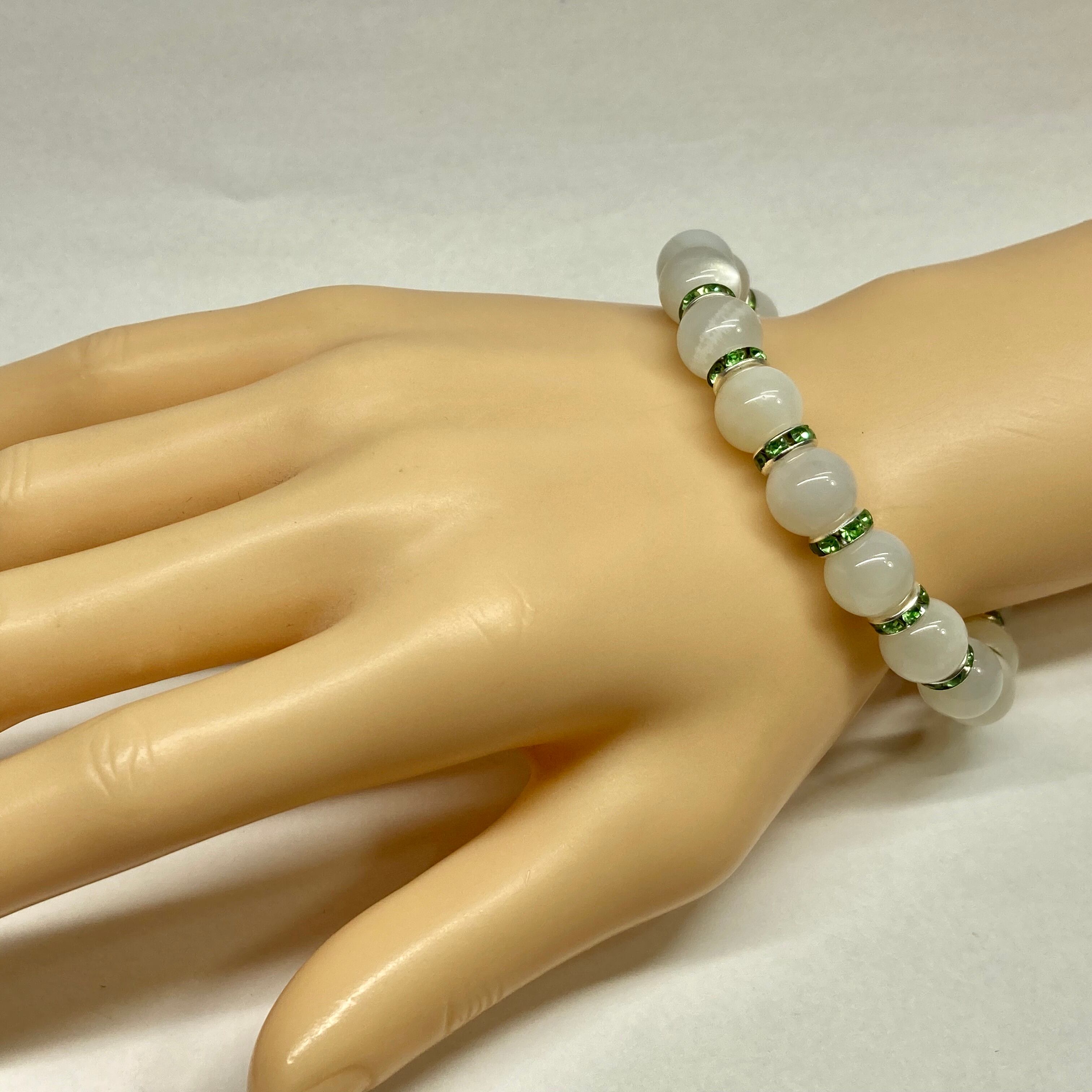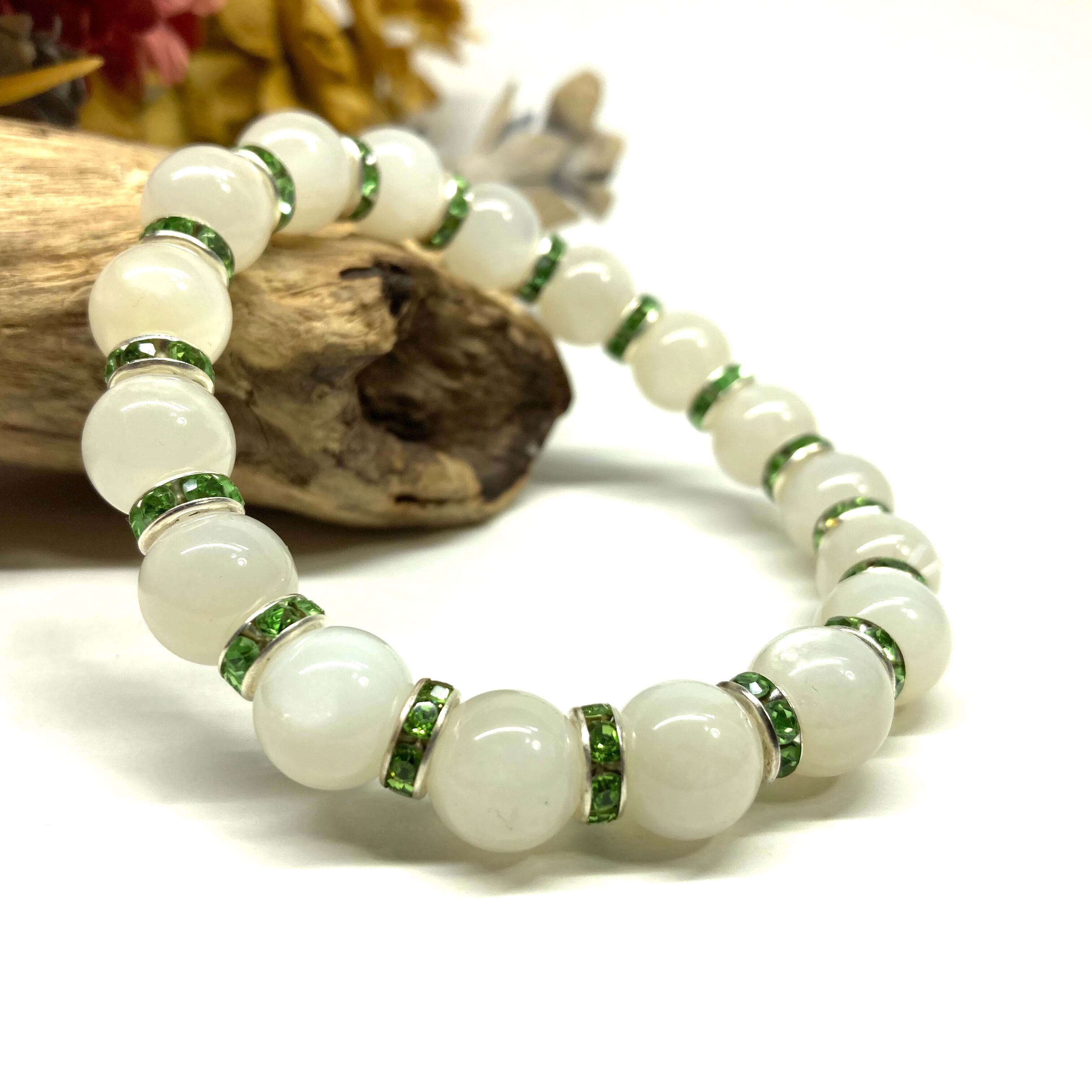 ムーンストーン パワーストーン ブレスレット 10mm 天然石 10mm (グリーン)メンズ・レディース 男性・女性 数珠ブレス 開運 ☆