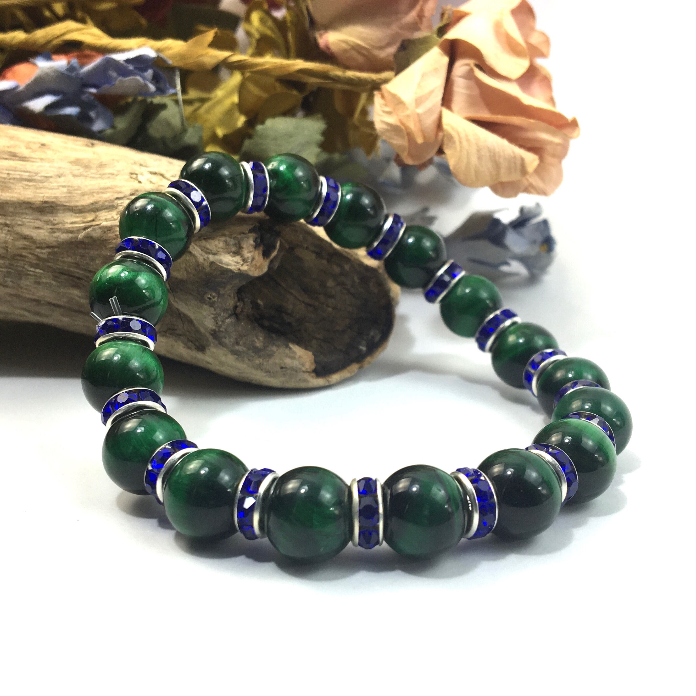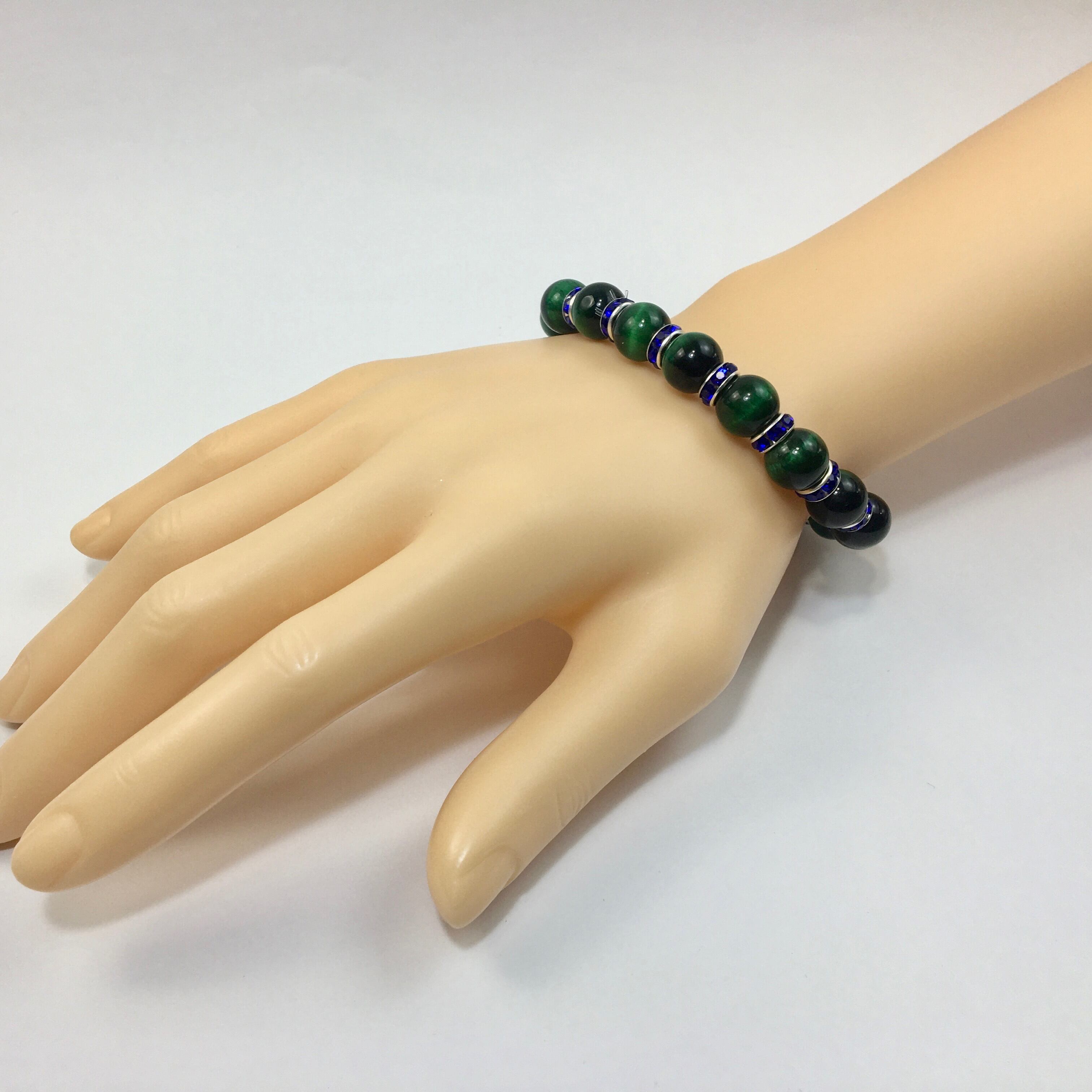 グリーンタイガーアイ パワーストーン ブレスレット 10mm (ダークブルー)メンズ・レディース 男性・女性 数珠ブレス 開運 ☆