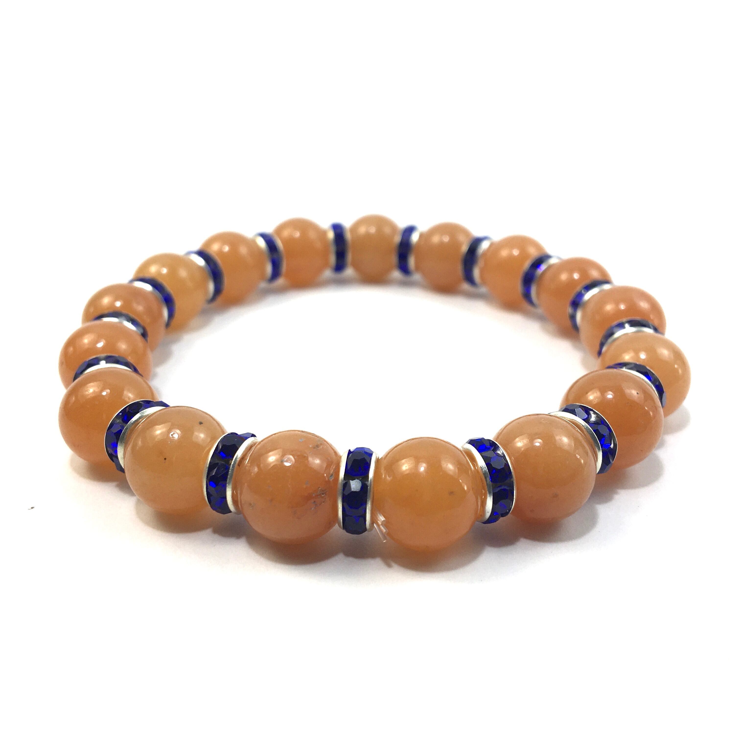 アベンチュリンと同様に癒しのパワーを持った石です。持ち主のエネルギーを穏やかなパワーで補い、潜在意識の中にあるネガティブな意識を取りのぞいてくれると言われています。また、付ける人に運を呼びチャンスをもたらし、逆境を乗り越えるパワーを与えてくれるとも言われ、行動力と情熱をおこさせてくれます。 明るい色合いから「恋」を実らせる効果もあるといわれています。