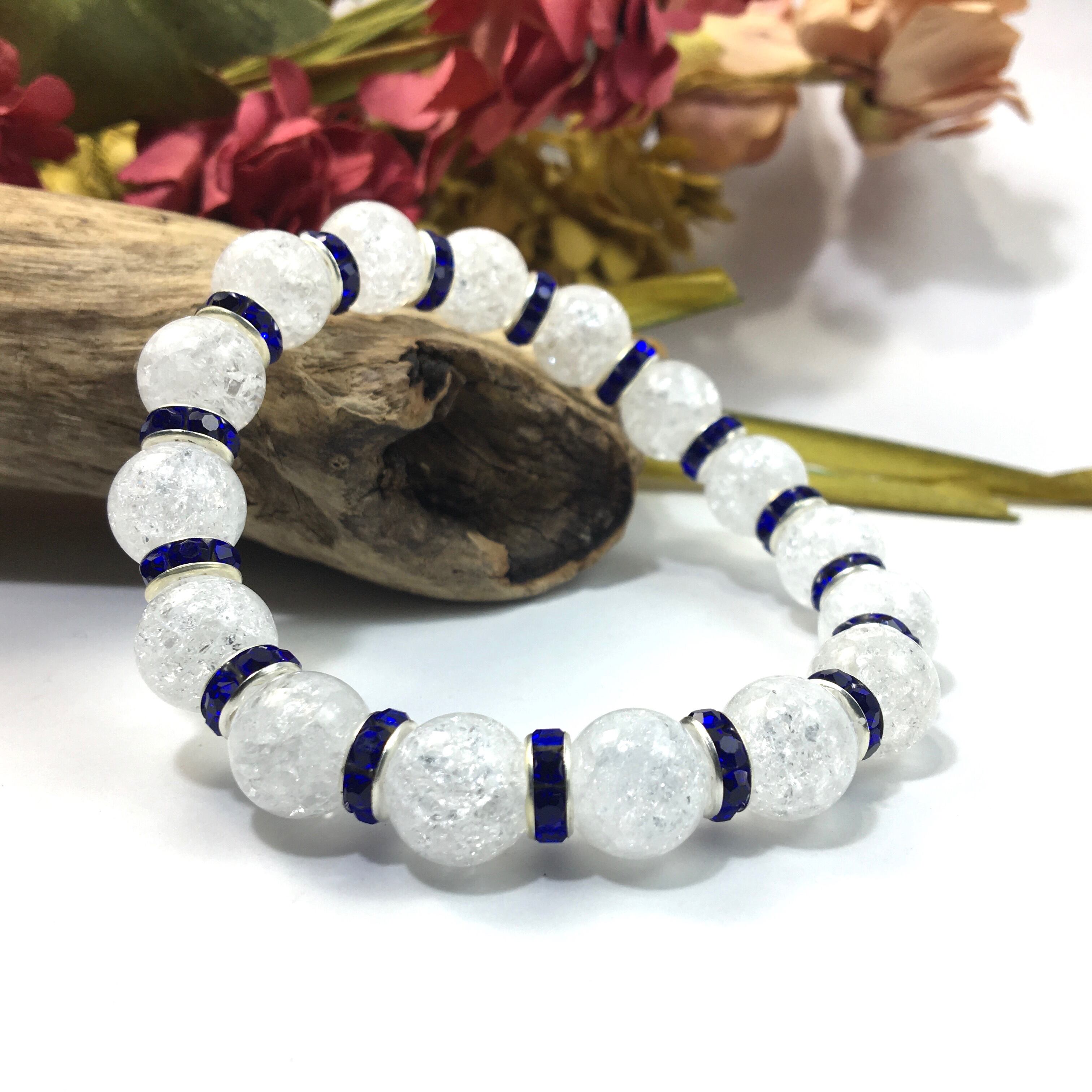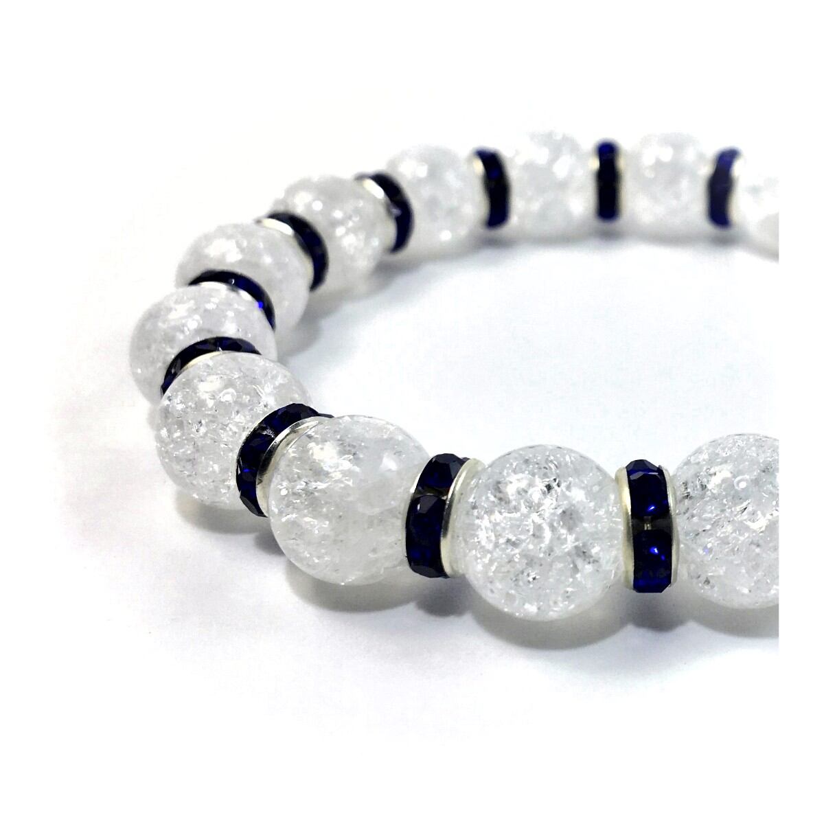 クラック水晶 パワーストーン ブレスレット 天然石 10mm (ダークブルー)メンズ・レディース 男性・女性 数珠ブレス 開運 ☆