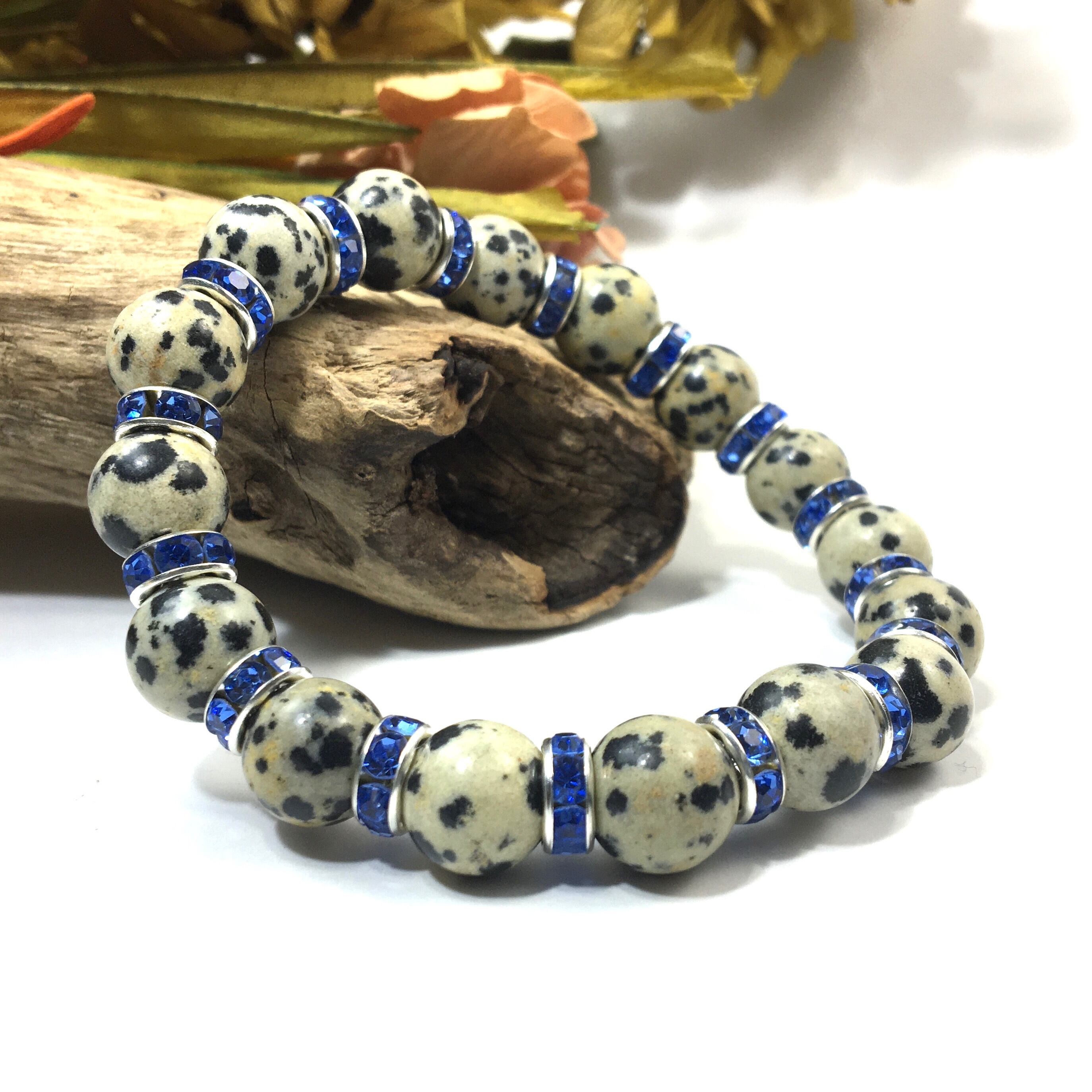 ダルメシアンジャスパー パワーストーン ブレスレット 天然石 10mm (ブルー)メンズ・レディース 男性・女性 数珠ブレス 開運 ☆