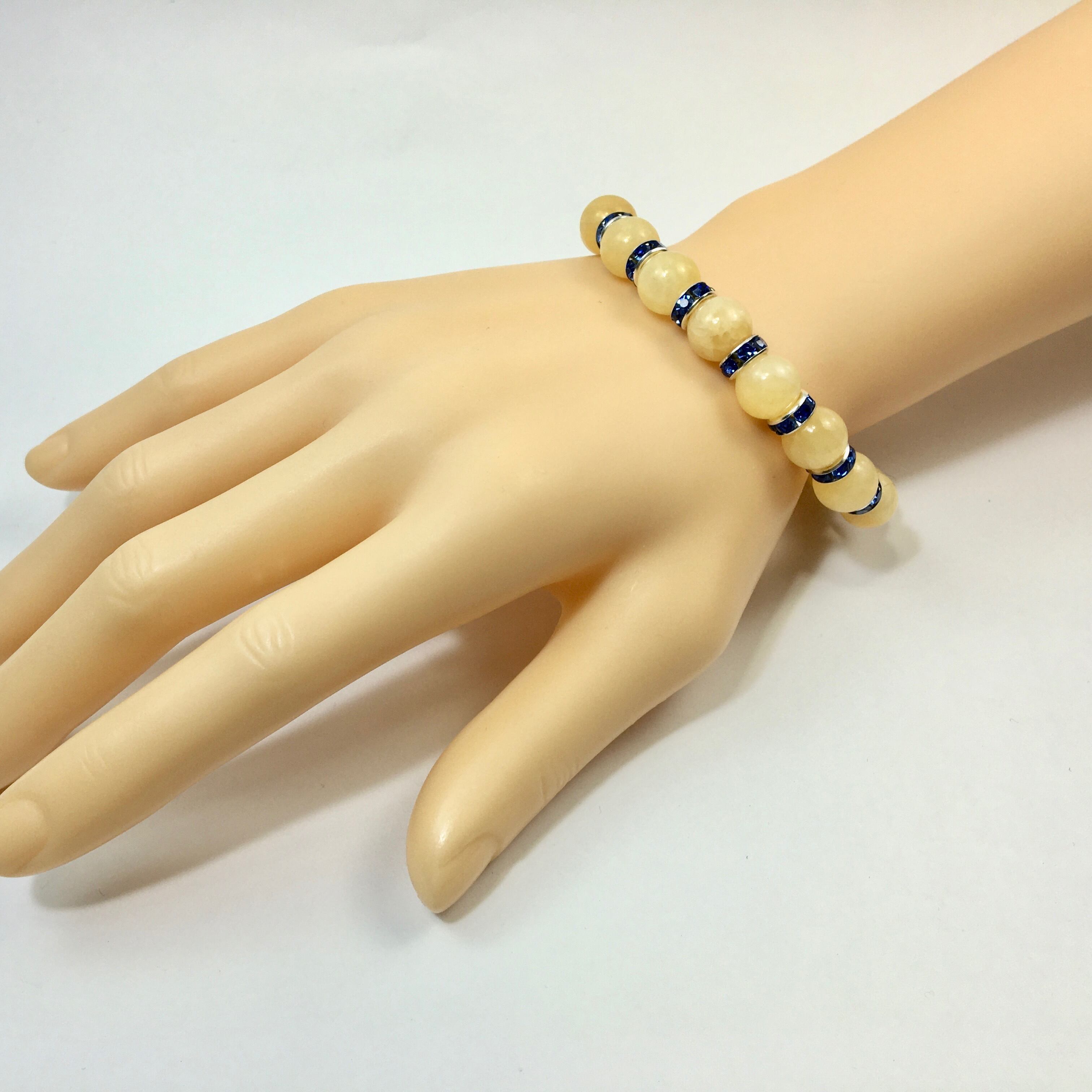 こちらは、アラゴナイトの10mm玉を使用したパワーストーンブレスレットです。石との間にはロンデルを挟み高級感を演出しております。シンプルなデザインは、シーン問わずどんなコーディネートとも合わせ易いブレスレットです。サイズは種類を選択からお選びください。(内周約14cm?内周約22cmでお選び頂けます)当社の中でも一番人気の実績があるデザインとなっております。気になる方はお早めにどうぞ。