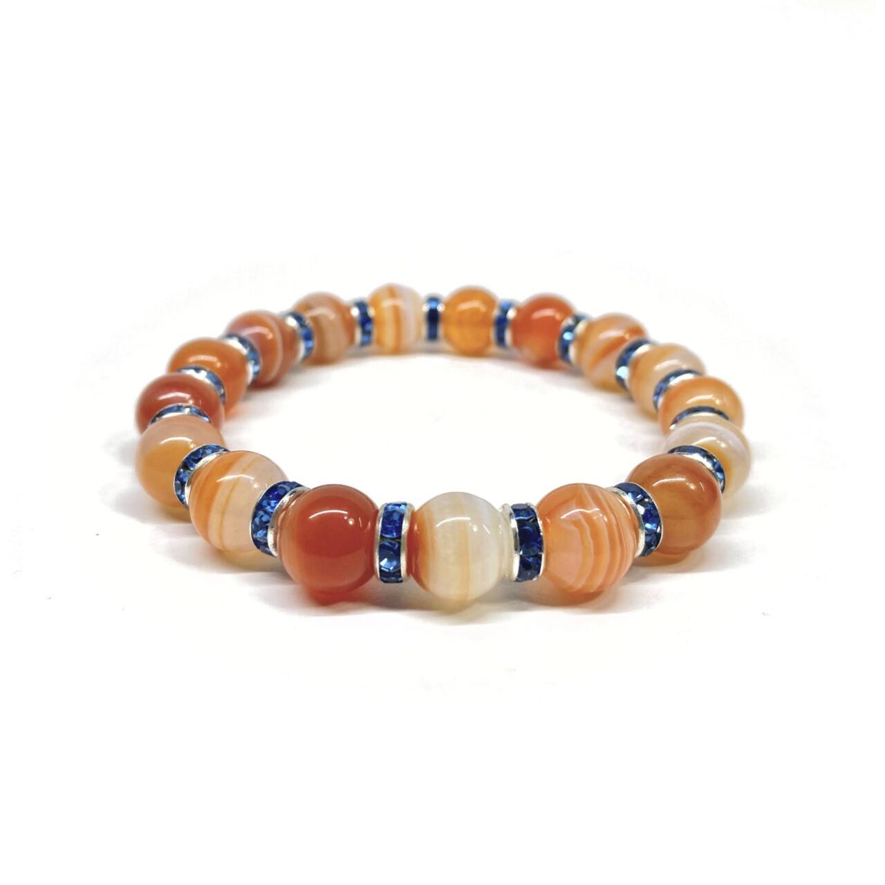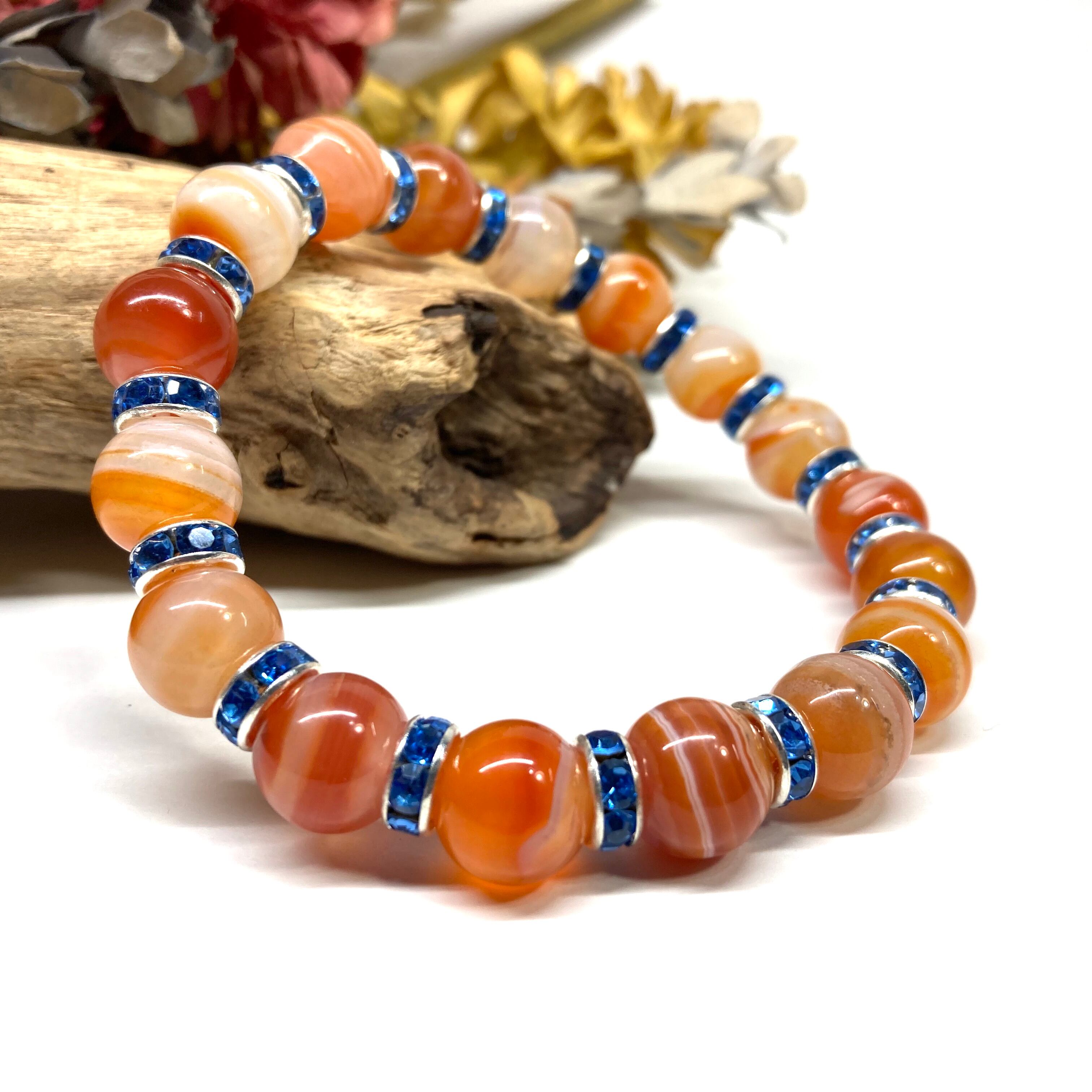 カーネリアン・サードニクス パワーストーン ブレスレット 10mm (ブルー)メンズ・レディース 男性・女性 数珠ブレス 開運 ☆