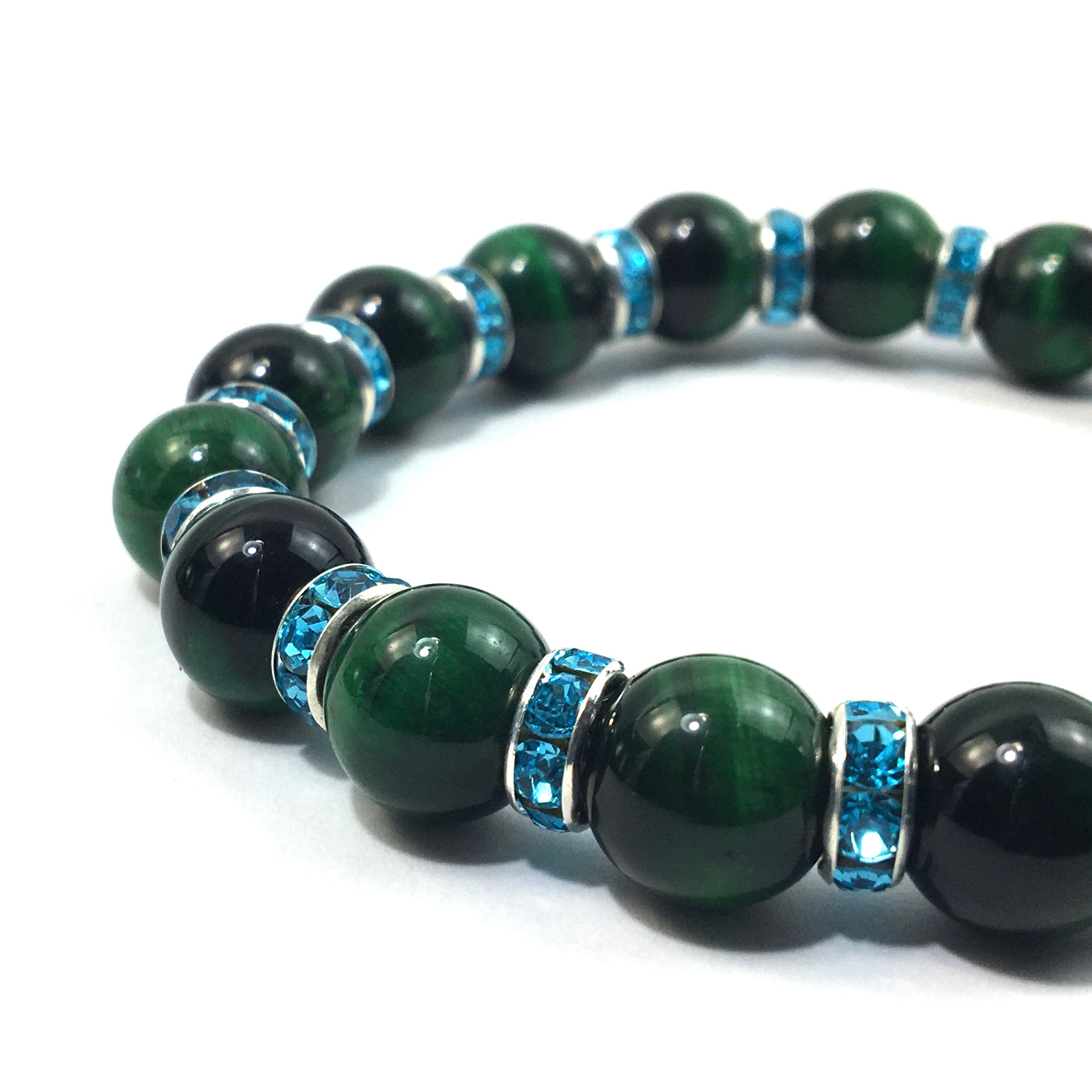 グリーンタイガーアイ パワーストーン ブレスレット 10mm (ライトブルー)メンズ・レディース 男性・女性 数珠ブレス 開運 ☆