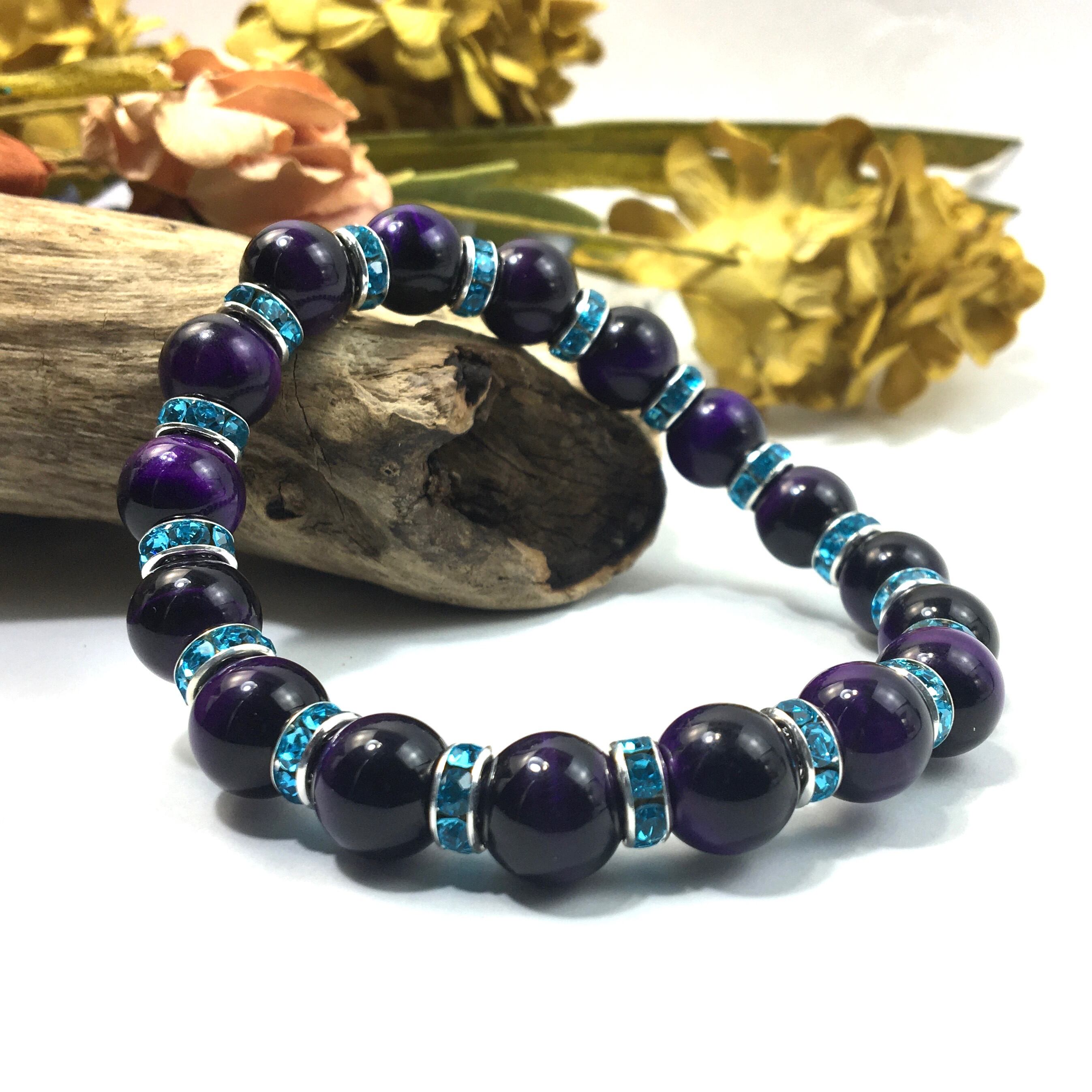 パープルタイガーアイ パワーストーン ブレスレット 10mm (ライトブルー)メンズ・レディース 男性・女性 数珠ブレス 開運 ☆