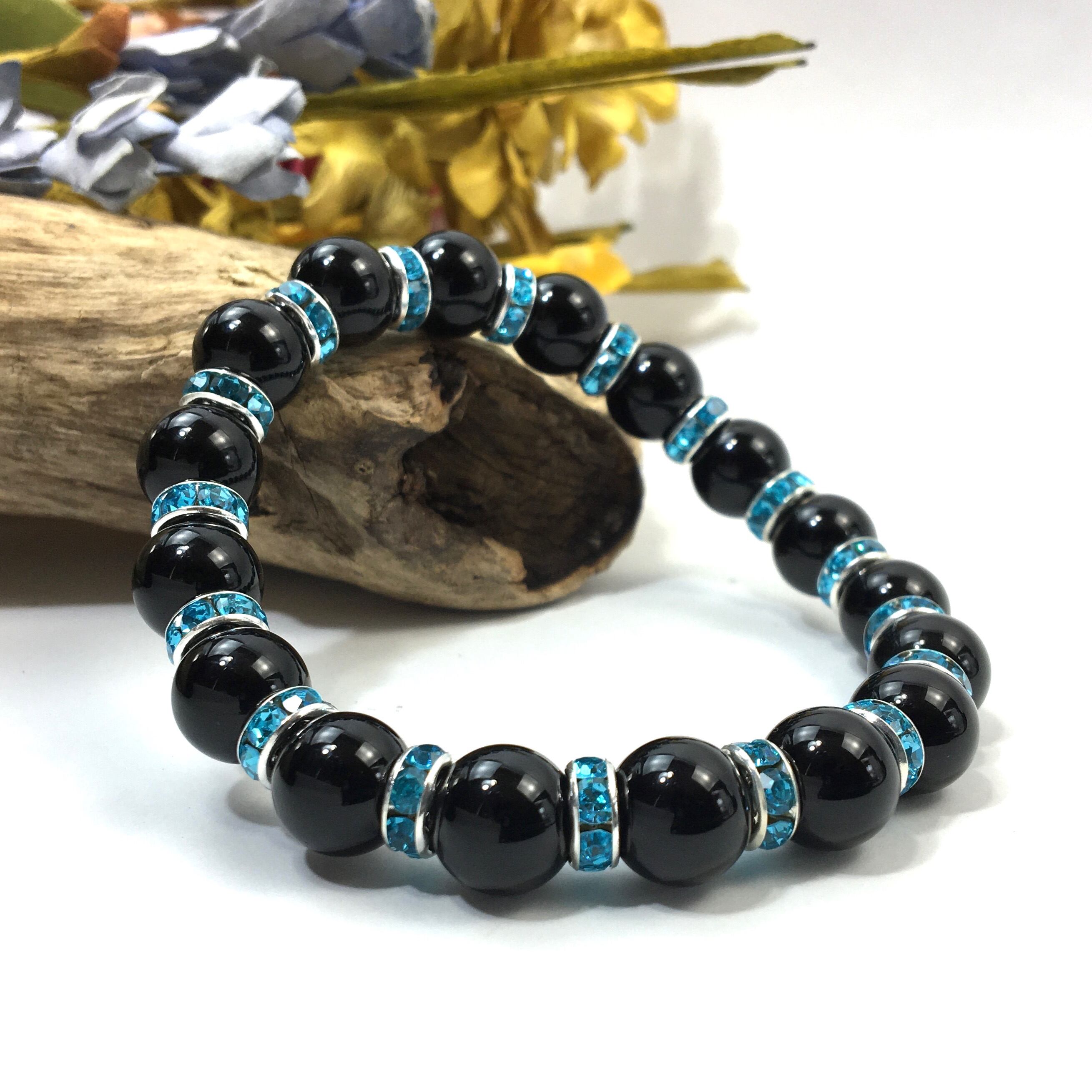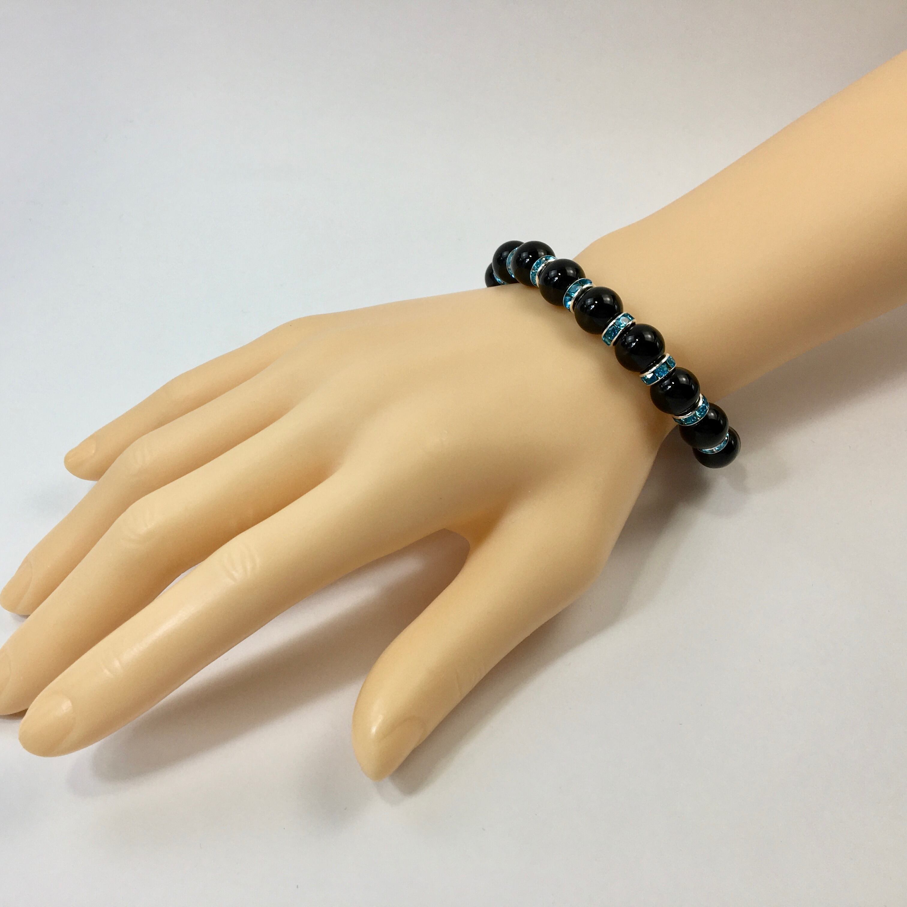 オニキス パワーストーン ブレスレット 天然石 10mm (ライトブルー)メンズ・レディース 男性・女性 数珠ブレス 開運 ☆