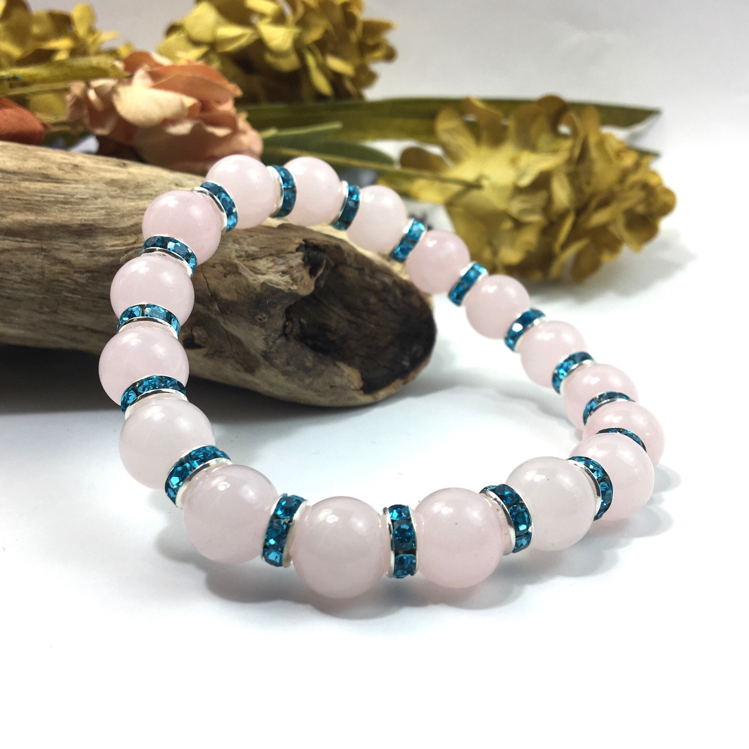 ローズクォーツ パワーストーン ブレスレット 天然石 10mm (ライトブルー)メンズ・レディース 男性・女性 数珠ブレス 開運 ☆