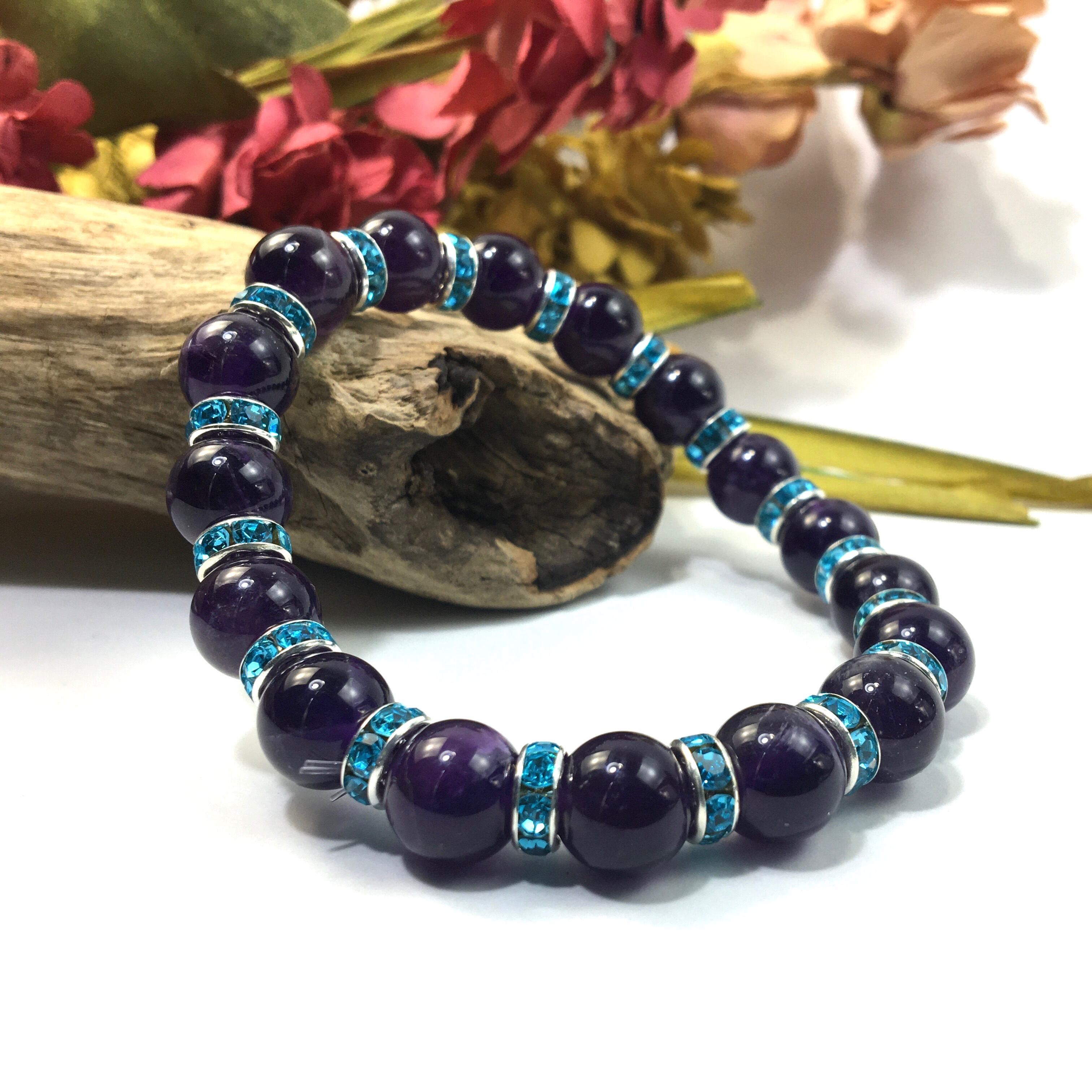 アメジスト パワーストーン ブレスレット 天然石 10mm (ライトブルー)メンズ・レディース 男性・女性 数珠ブレス 開運 ☆