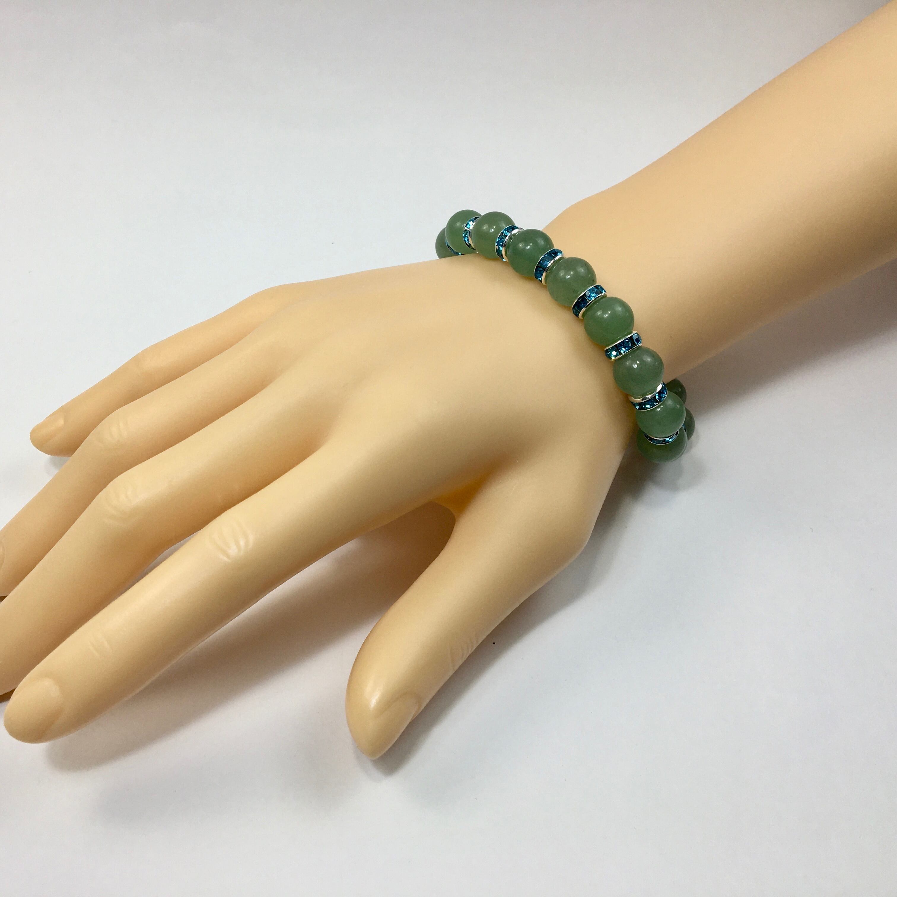 こちらは、アベンチュリンの10mm玉を使用したパワーストーンブレスレットです。石との間にはロンデルを挟み高級感を演出しております。シンプルなデザインは、シーン問わずどんなコーディネートとも合わせ易いブレスレットです。サイズは種類を選択からお選びください。(内周約14cm?内周約22cmでお選び頂けます)当社の中でも一番人気の実績があるデザインとなっております。気になる方はお早めにどうぞ。