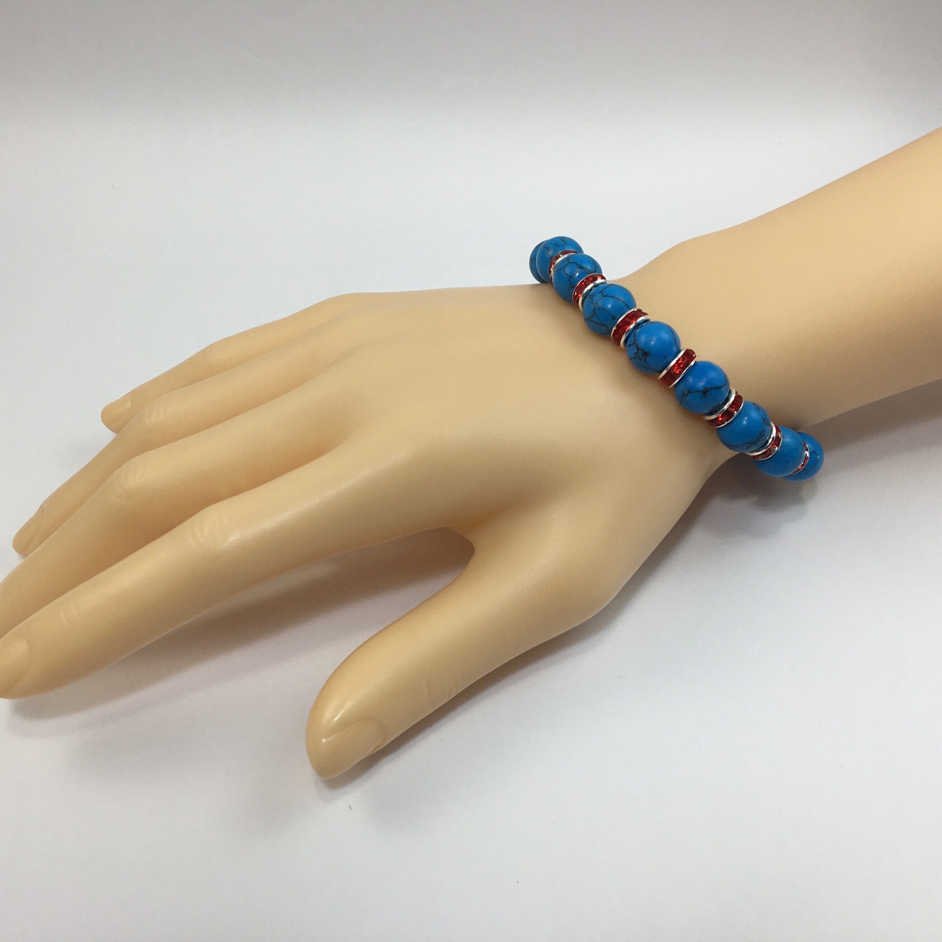 ターコイズ パワーストーン ブレスレット 10mm (レッド)メンズ・レディース 男性・女性 数珠ブレス 開運 ☆