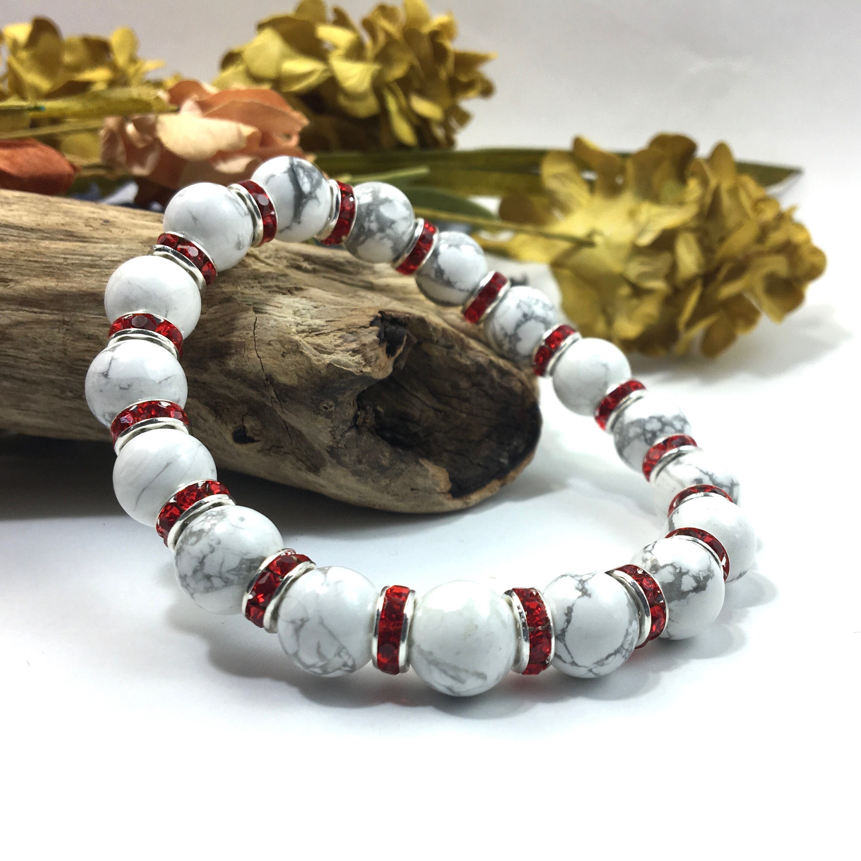 ハウライト パワーストーン ブレスレット 天然石 10mm (レッド)メンズ・レディース 男性・女性 数珠ブレス 開運 ☆